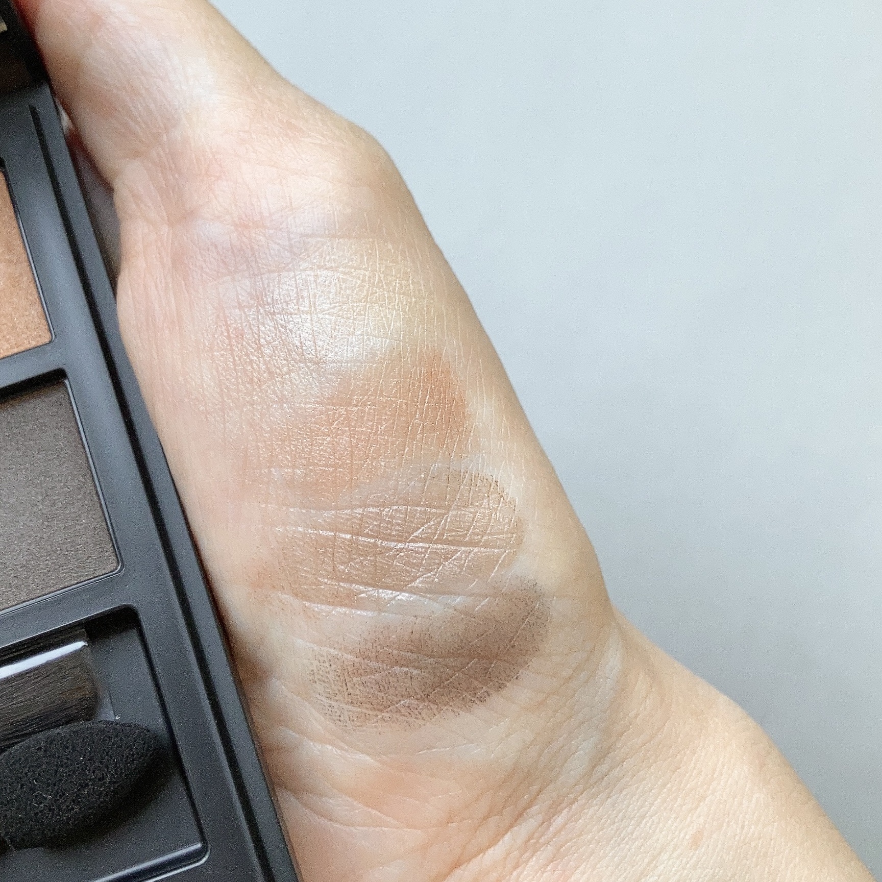 光の加減によってチョコレートカラーになったりレッドブラウンになったり不思議な絶妙カラー。 ピンクラメの他にもグリーンラメもチラチラして、なんかもうめちゃくちゃ綺麗です🥰 でもそんなにラメ感は派手でなく、自然。 見た目以上にニュアンス発色なのでメイクに深みを出したいときにちょい足しするにも便利◎ さらっとした粉質は好き嫌いがわかれそうですが、個人的にはぼかしやすくて好き👏