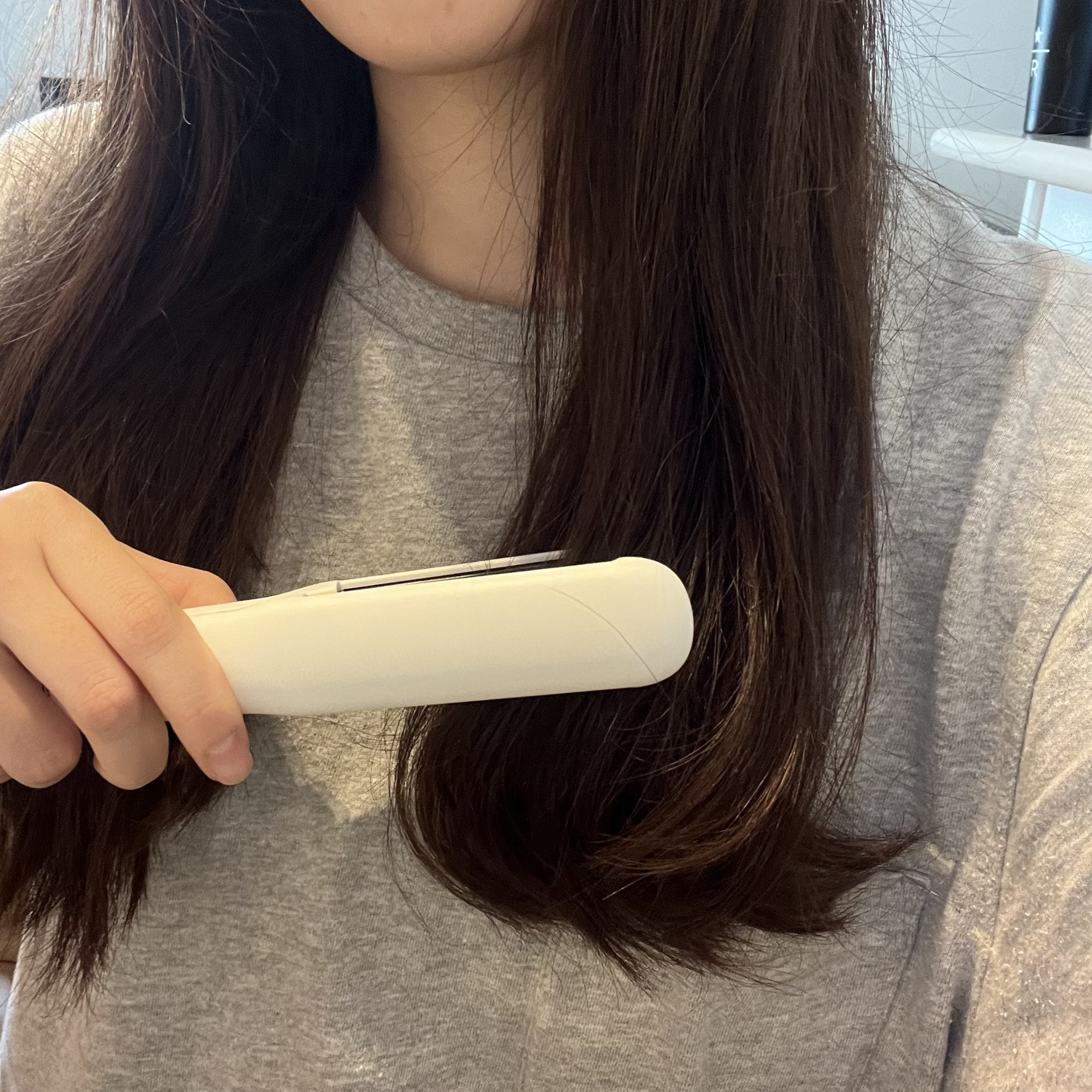 コスメ感がアップし手のひらに乗る小さめサイズのヘアアイロン デザインもコスメのようにスタイリッシュでオシャレなデザイン🥺 コンパクトで軽いので小さいバッグにも入れることが出来ます!