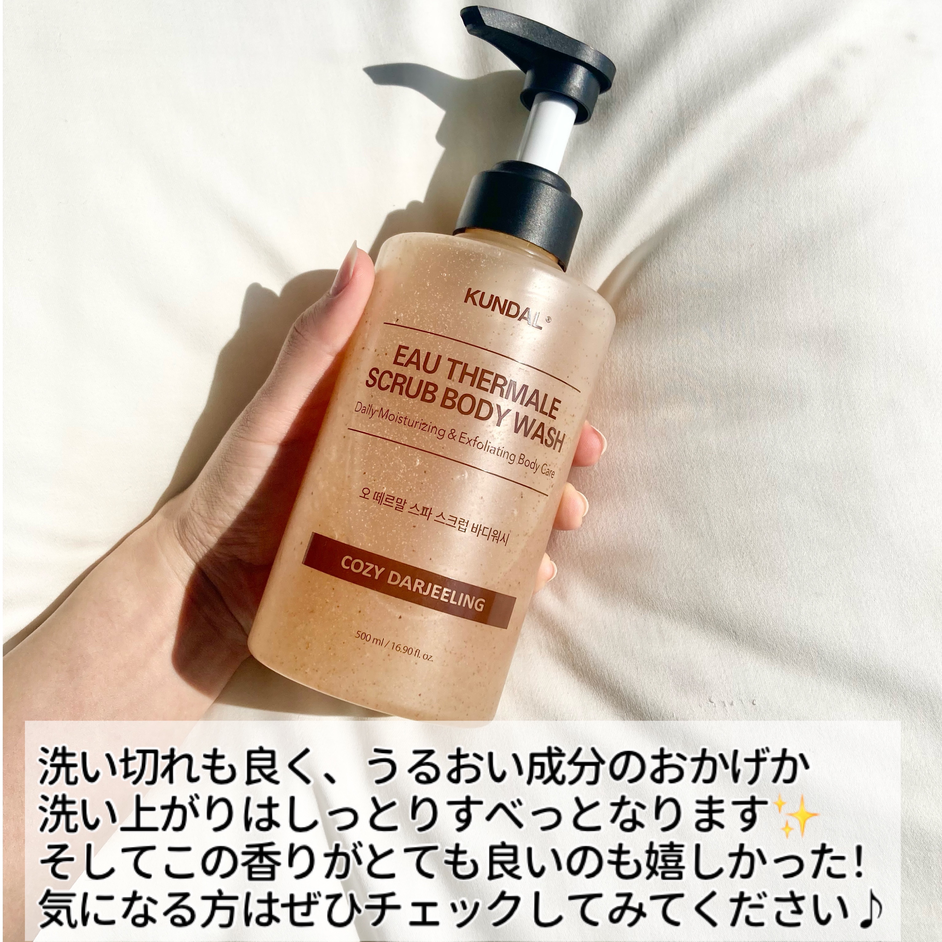 KUNDALボディウォッシュ+ボディスクラブボディウォッシュはアップグレードされた保湿成分で洗い上がりしっとり🫧ボディタオルで泡立てるとふんわりした泡ができあがり心地よく全身洗うことができました🧴500mlと大容量なのでコスパも◎香りは独特な...