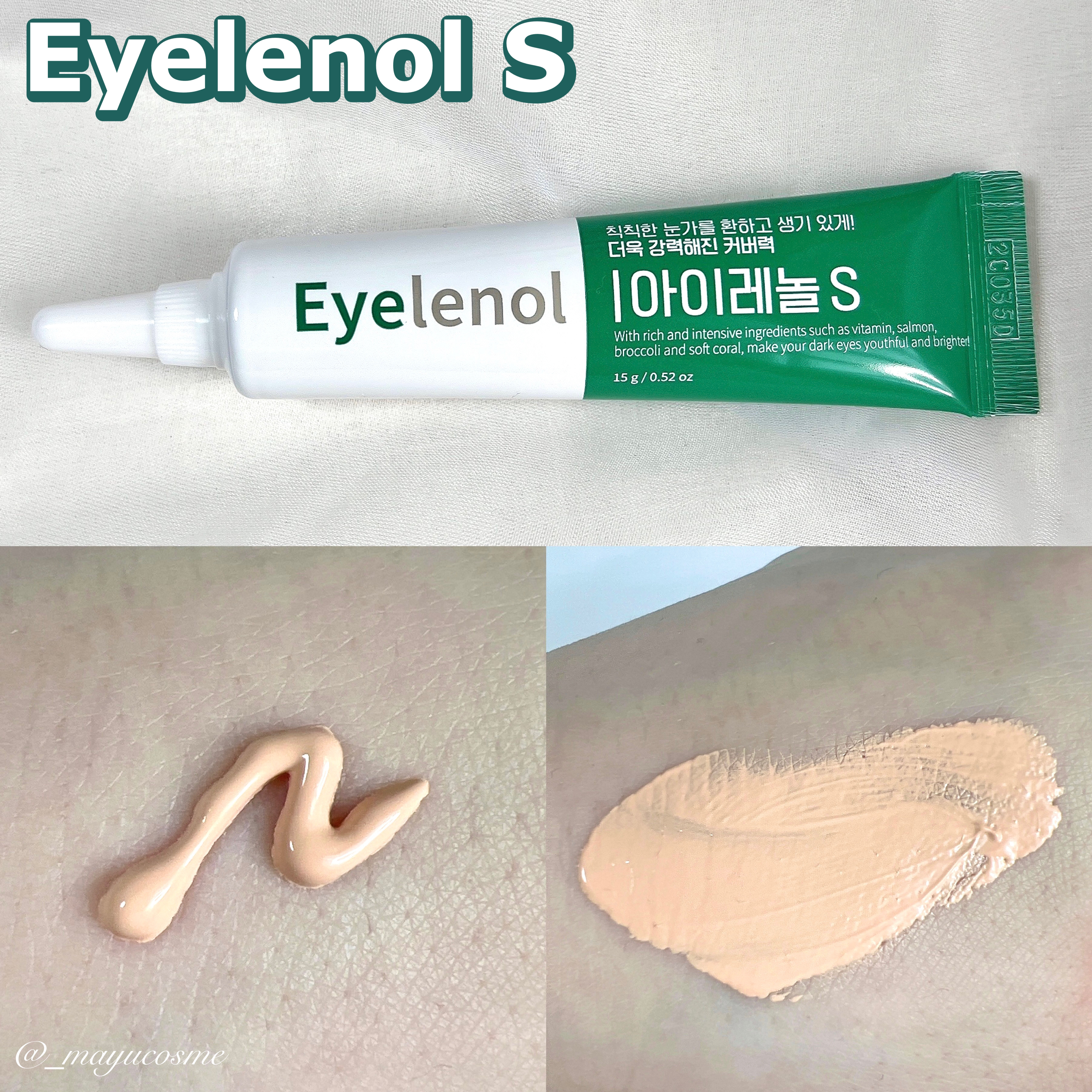 目元などの肌悩みをカバーしながら潤いケアできる機能性アイクリーム✨ ナチュラルなカバー力+しっとり感→アイレノール アイレノールはみずみずしく伸びのいいテクスチャーで、しっとり>カバー力という印象。 カラーはやや明るめですが、肌なじみがいいお色味でした👍🏻 どのお色味も柔らかくしっとりとしていて、馴染ませるとベタつきにくく使いやすかったです🙌🏻
