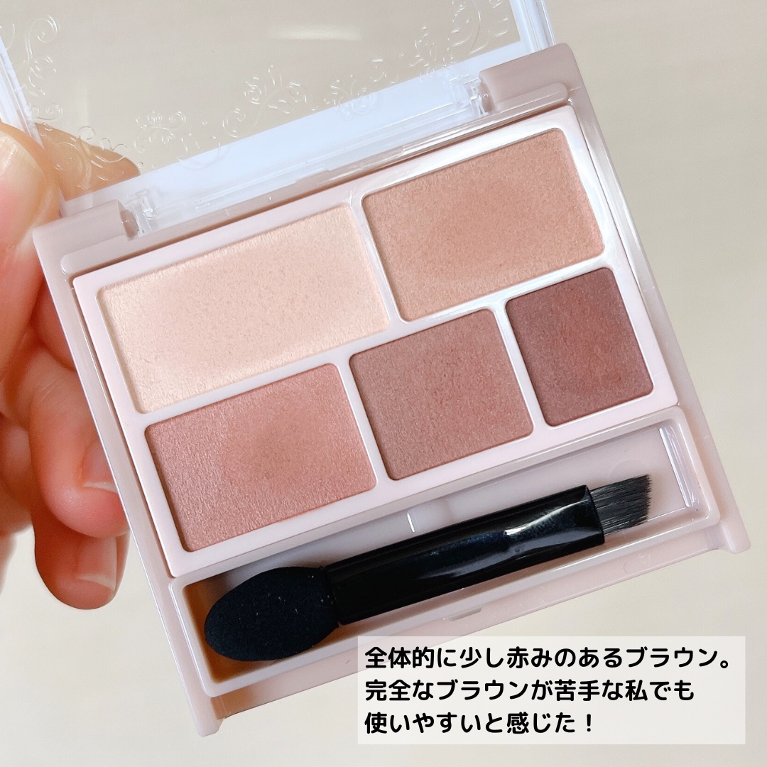 アイメイク、これ1つで完了♡ アイシャドウ・アイブロウ・アイライナーとマルチに使えるラメなしマットな5色入りアイシャドウパレット 明度の違う同系色ブラウンで構成されたパレットなので、きれいなグラデーションが簡単に完成。 カラバリ多いし、安いから買いやすくて良いですが、粉がサラサラすぎて使いづらかったので、リピはなしかな🥲