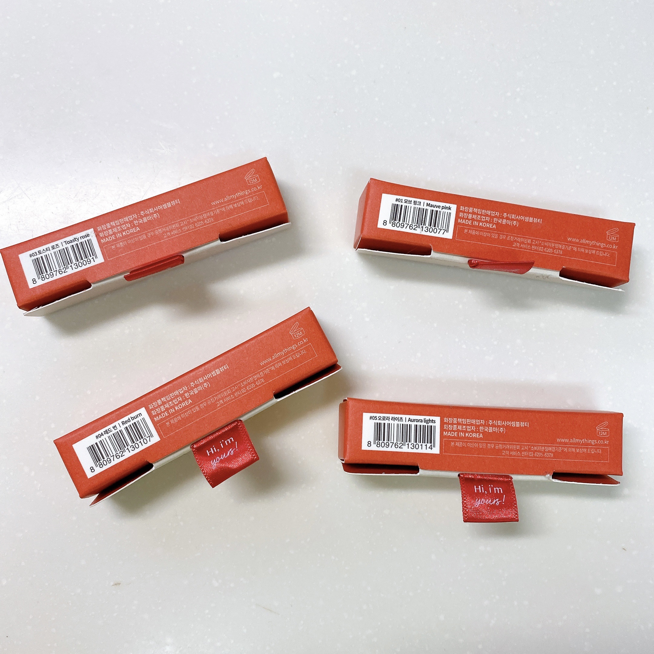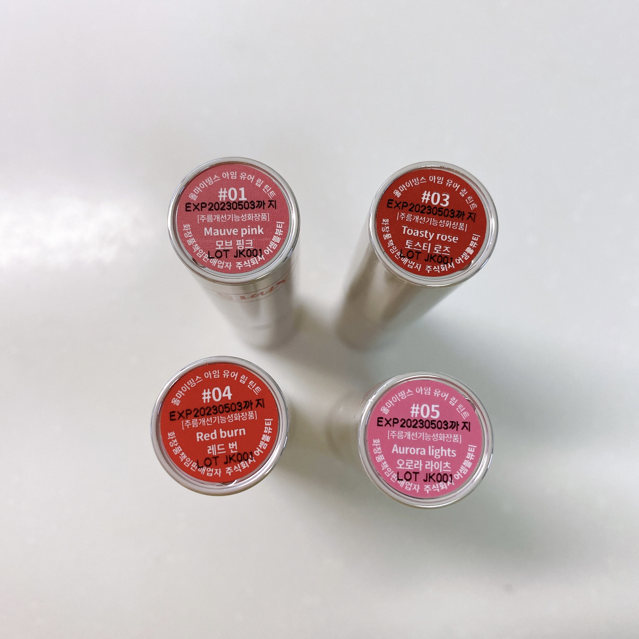 🩷allmythingsアイムユアリップティント01MauvePink🩷保湿成分として月見草オイル、カカオシードオイルなどが配合されていて唇に優しい設計になっています😊保湿力があって唇も荒れにくく感じました✨リップクリームの様ななめらかなテク...
