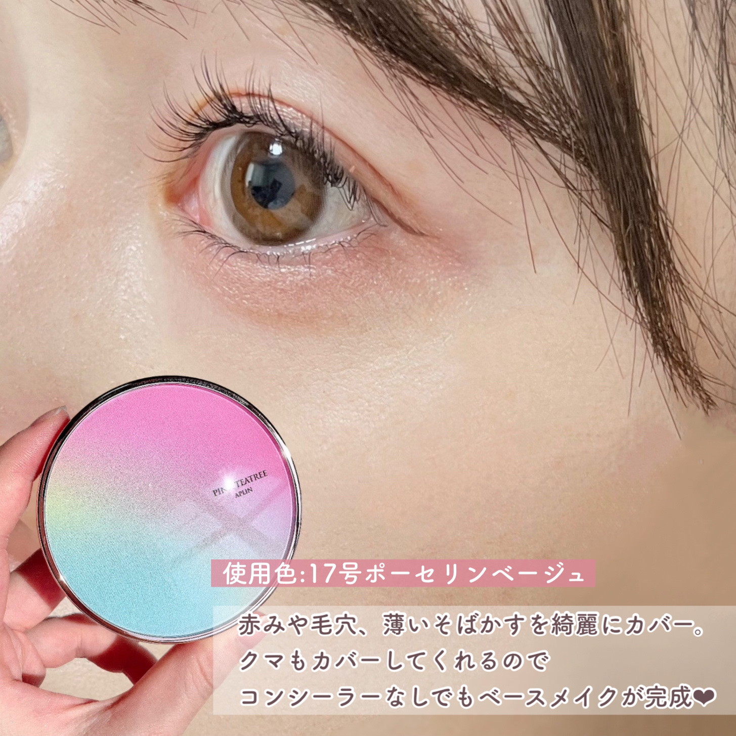 - ピンクティーツリーシリーズより待望のメイクアップラインが登場。 長時間強力なカバー力が続くクッションファンデ。 SPF50+/PA++++で紫外線対策もばっちり。 お肌に塗ると形成されるレイヤリングフィルム膜により、水分の蒸発を防ぎ、乾燥のない肌へ導きます。赤みやくすみをしっかりカバーできるのに、厚塗り感のないなめらかな仕上がりへ。 ティーツリーやツボクサエキス、緑茶エキスなどの自然成分配合で、メイクをしながらお肌のケアも可能です。しっかりカバーしたいけど、お肌への負担が心配な方にもオススメ。