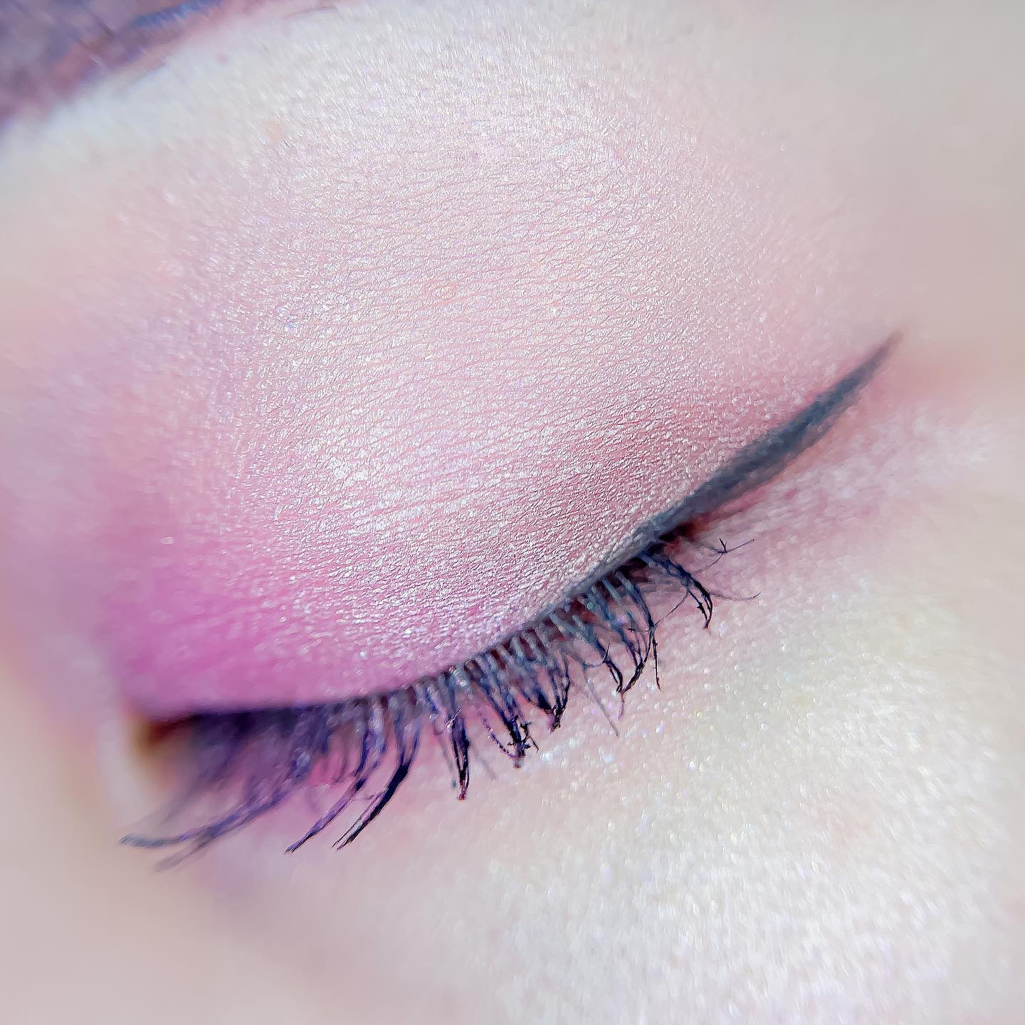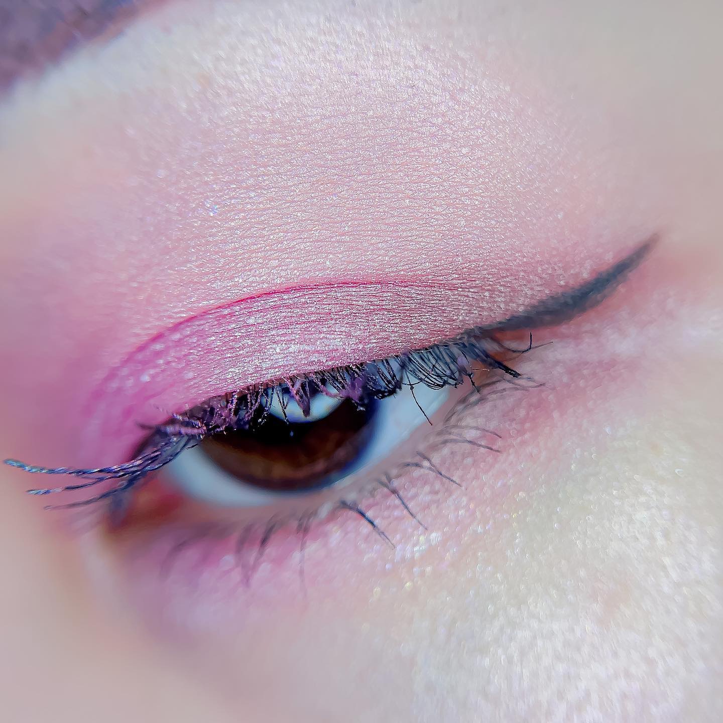 ピンクにグレージュも良いですね👌💗 今日は可愛らしい感じにしてみました💕 上下瞼黒目〜目頭側にラメを塗ってキラキラさせております🤩 目尻はマットのピンクを濃いめに重ねて💗 グレージュのアイライナーと相性◎