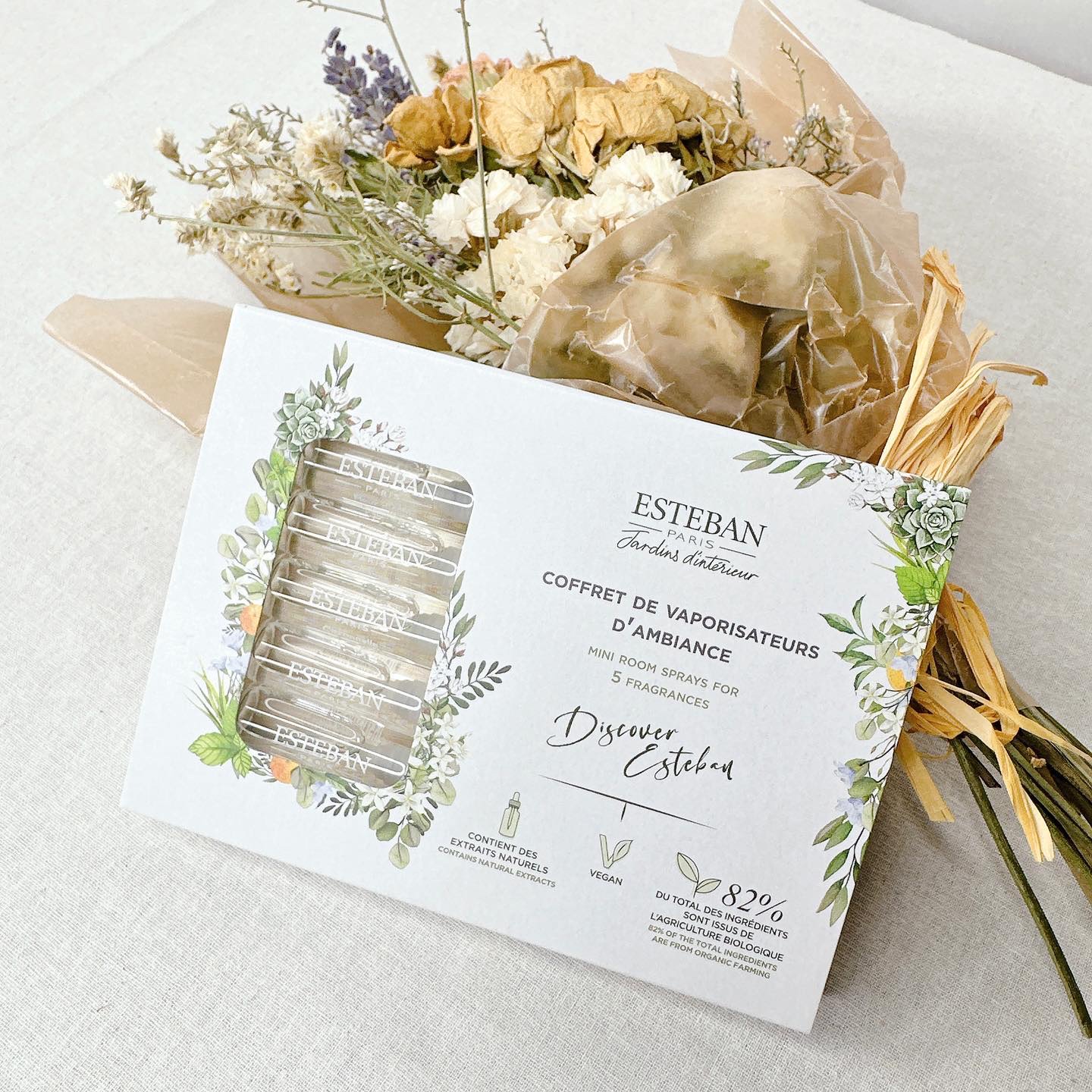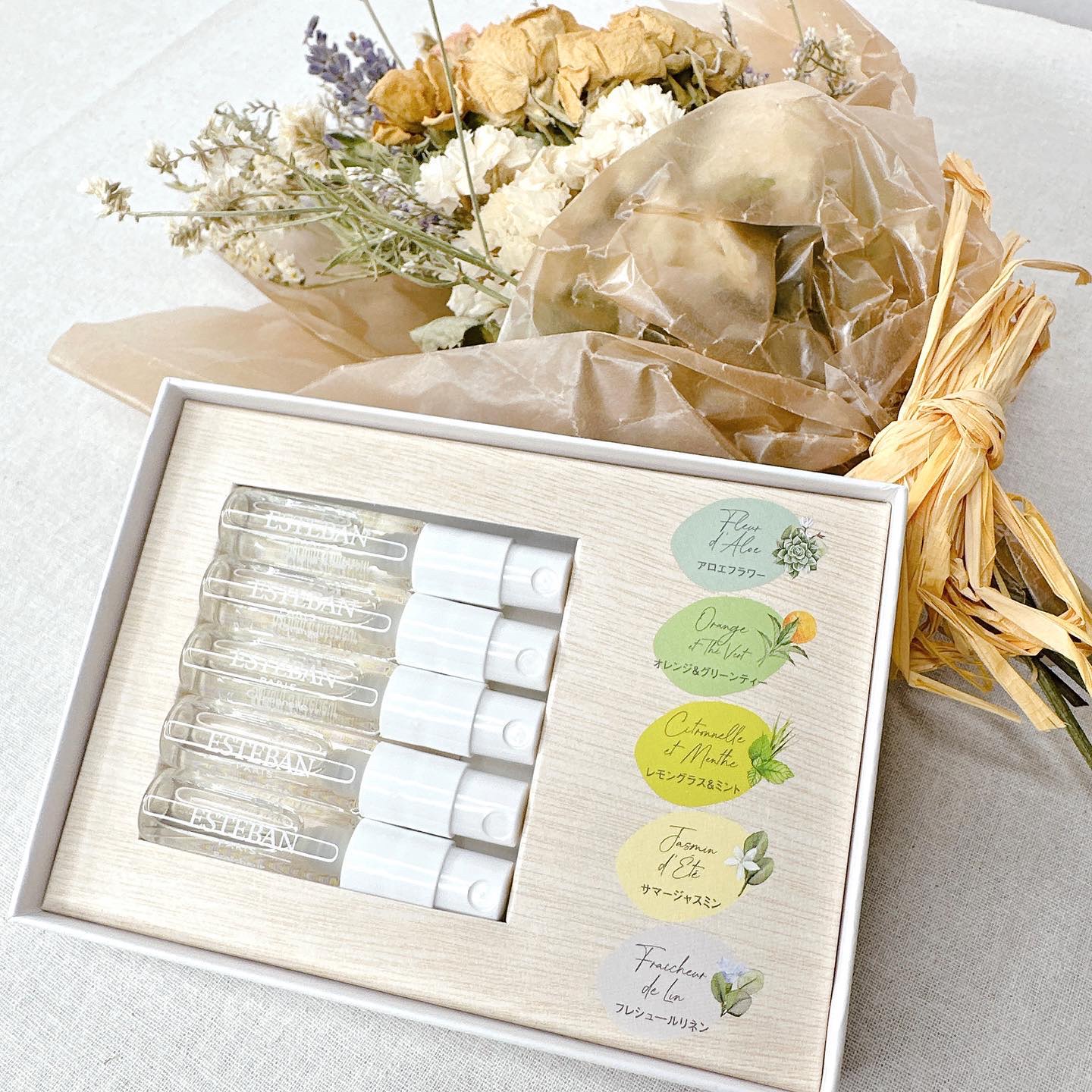 ESTEBANの花や果実の香りが楽しめるフレグランスセットをご紹介✧*。 ESTEBANのインテリアガーデンナチュール(IGN)は心地よさと、健康・環境への安全性を組み合わせた美しい香りアイテムで構成されているそう。 【インテリアガーデンナチュールラタンブーケディフューザーレモングラス&ミント】は、すっきりとしたレモングラスと清涼感のあるミントの葉の涼やかで爽やかなフレッシュシトラスの香り。 【インテリアガーデンナチュール ミニルームスプレーコフレ】は、100%オーガニック植物性アルコールを使用したルームスプレーから人気の5種類の香りが贅沢なアソート。 持ち運びに便利なミニサイズで、気分に合わせて使い分けできるのが嬉しい楽しいと思いました♡