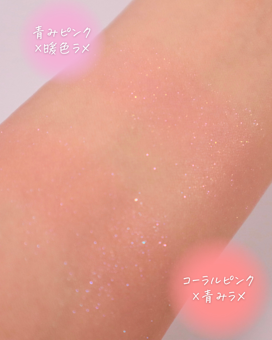ふっくらスースー感はそのままに90%自然由来成分のフォーミュラに進化!今まで通り、むしろそれ以上にケアできるのも嬉しい❤️ ピンクのキラキラがギッシリでピンクとラメが好きな人要チェック♡ピンク系リップとあわせると超カワイイです。 青み系の偏光感のあるホログラムに一目惚れ😍店舗で見た時に即決で買うと決めた色♡ラメ好き必見のイチ推しカラー✨