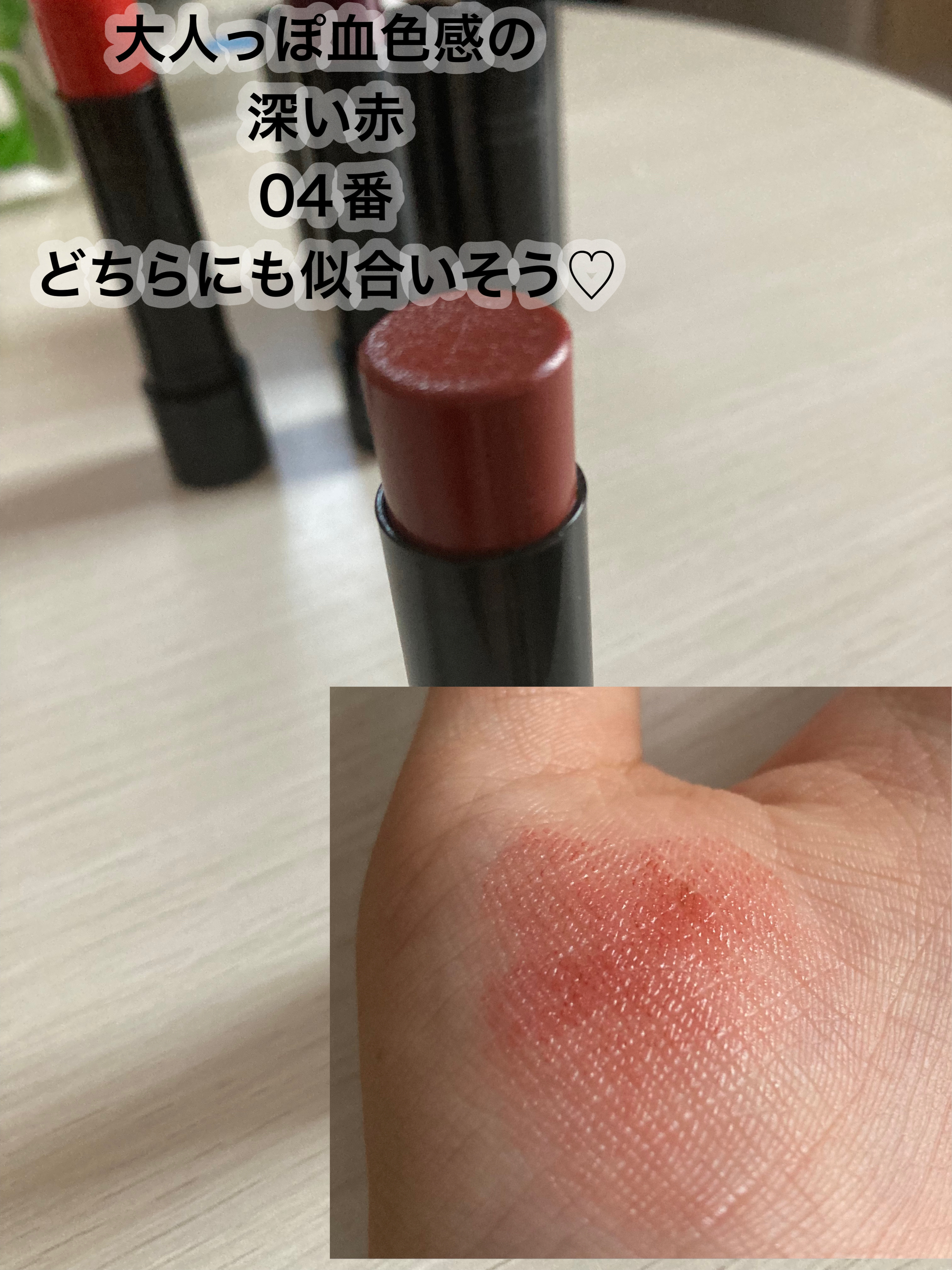 - 欲しい血色感をオンできるカラーリップ。唇の色を透かす発色で、素唇×色の掛け合わせを実現。自分にマッチする血色感に出会えるリップシリーズ。 ナチュラル血色感、にじみ血色感、ヘルシー血色感、シアー血色感、じんわり血色感の5タイプ。 光でぼかす縦ジワ補整、うるおいを閉じ込める密封保湿、UVカットの3つの機能。