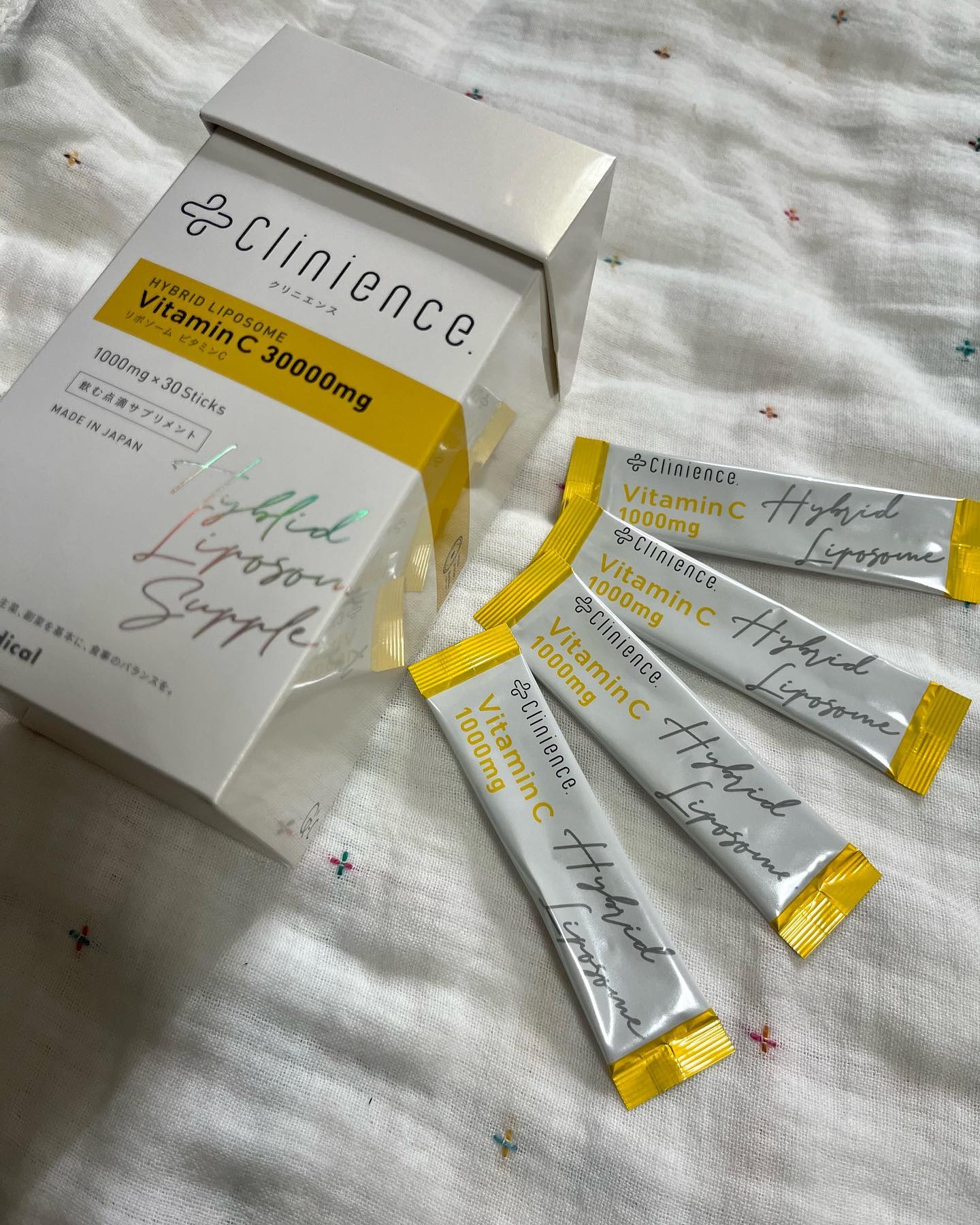 点滴のような効果をサプリメントの摂りやすさで細胞にダイレクトに届ける DSM社のイギリス製ビタミンCを使用 遺伝子組み換えでない とうもろこしから製造されたもの 実は日本で流通する9割は中国製だそう 知ってましたか? 美容と健康に必要な「ビタミンC」 どうせとるなら 良質なものをとりたい! 個包装なので どこでも飲めます おすすめの摂取タイミングは就寝の1時間前に1包(1000mg) 飲んでみて 肌トラブルが落ち着いて 睡眠による回復がより高まったような気がしました クリニエンス のラインナップは リポソーム ビタミンC リポソーム セラミド リポソーム NMN があります