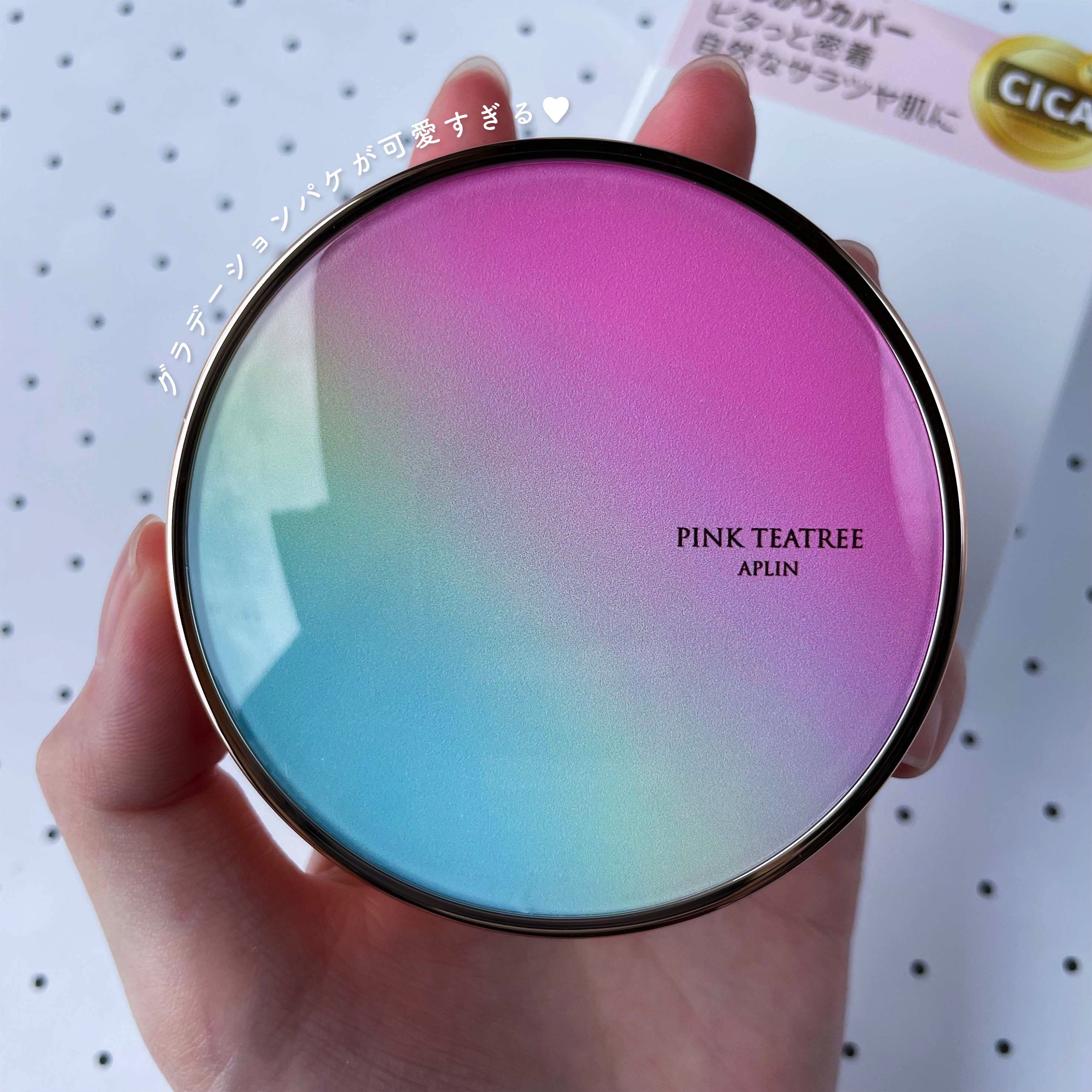 APLIN ピンクティーツリーカバークッション 21号ライトベージュ 2,490円(税込) 少量でよく伸びてハイカバー! 赤みやくすみをしっかりカバ一できるのに、厚塗り感のないなめらかな仕上がり♡ ハイカバーなのにナチュラルなツヤ感とサラッとしつつ、乾燥崩れしにくい仕上がりに感動します!!