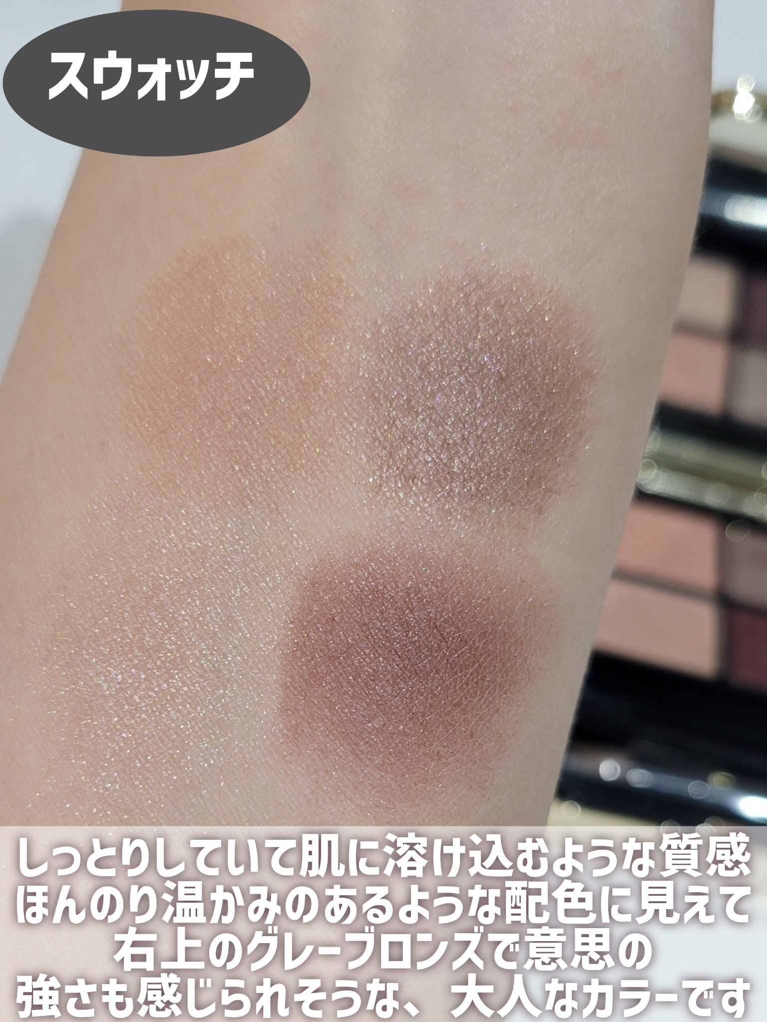 クレ・ド・ポーボーテオンブルクルールクアドリ3SundriedDriftwood【上品すぎん?】左下がクリームのアイベースのような感じで明るさともちを良くしてくれるブルベ夏なので1と3で悩んだけど少しだけピンク味が欲しくて3をモーヴっぽいけど...
