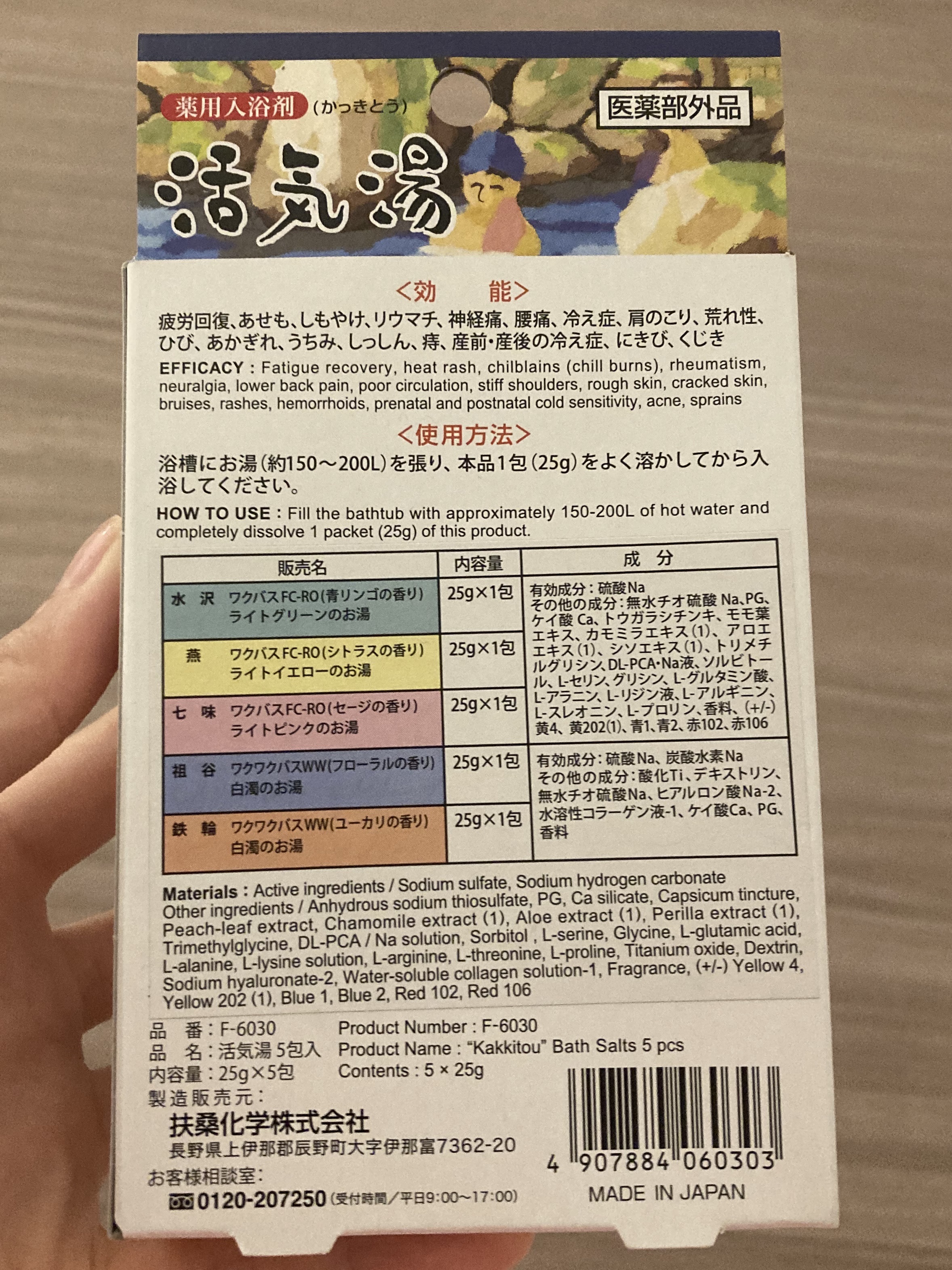 それぞれ香りが良くって、あと湯色もしっかり出るので温泉気分を堪能できるのがお気に入り♡
