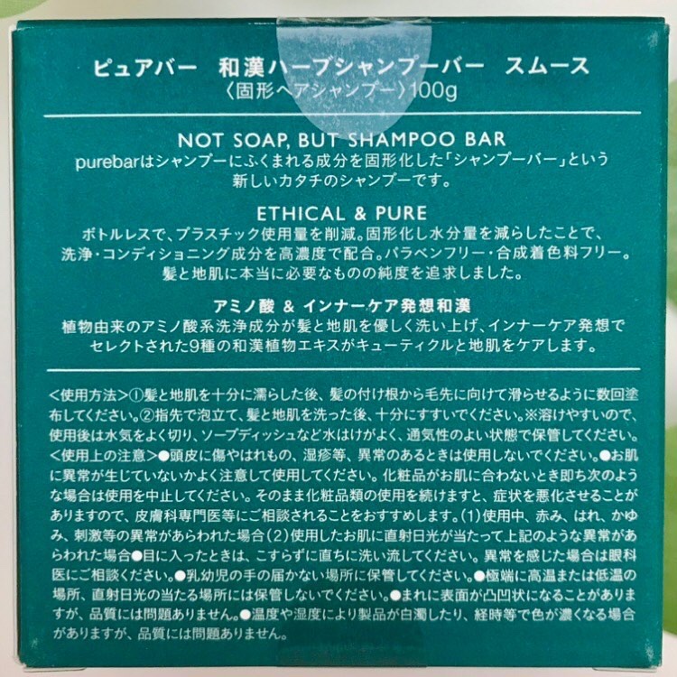 商品詳細情報purebar ピュアバー 和漢ハーブシャンプーバー スムース