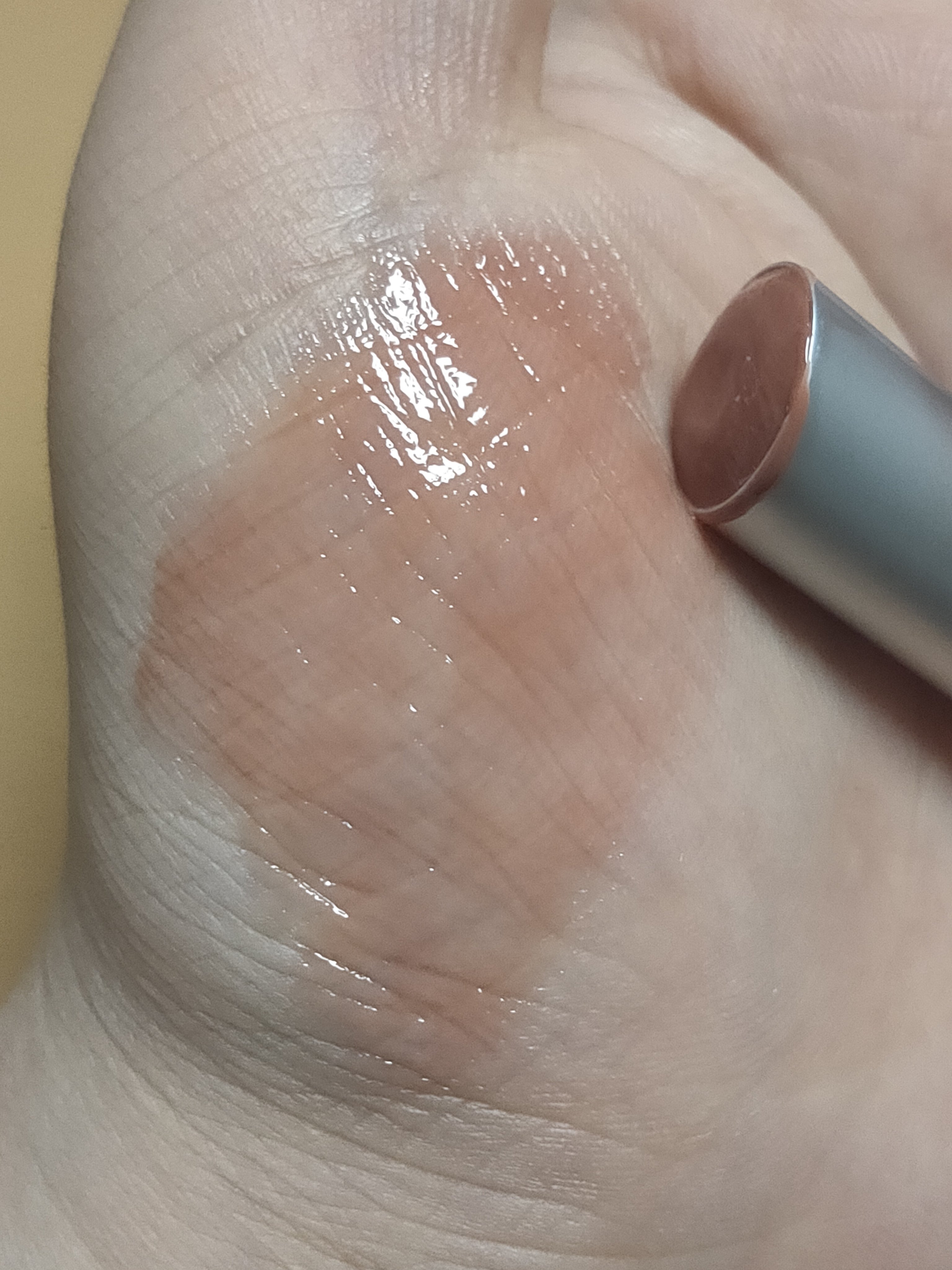 テクスチャは硬め寄りの普通で、色は超薄付き。 ほぼ発色しないので、別の色を重ねるなりしないと薄ーいラメにしか見えない。 ちふれの固形リップ全般に言える事ですが、基本的にマットリップなので水分がなく、唇が乾燥しやすいです。