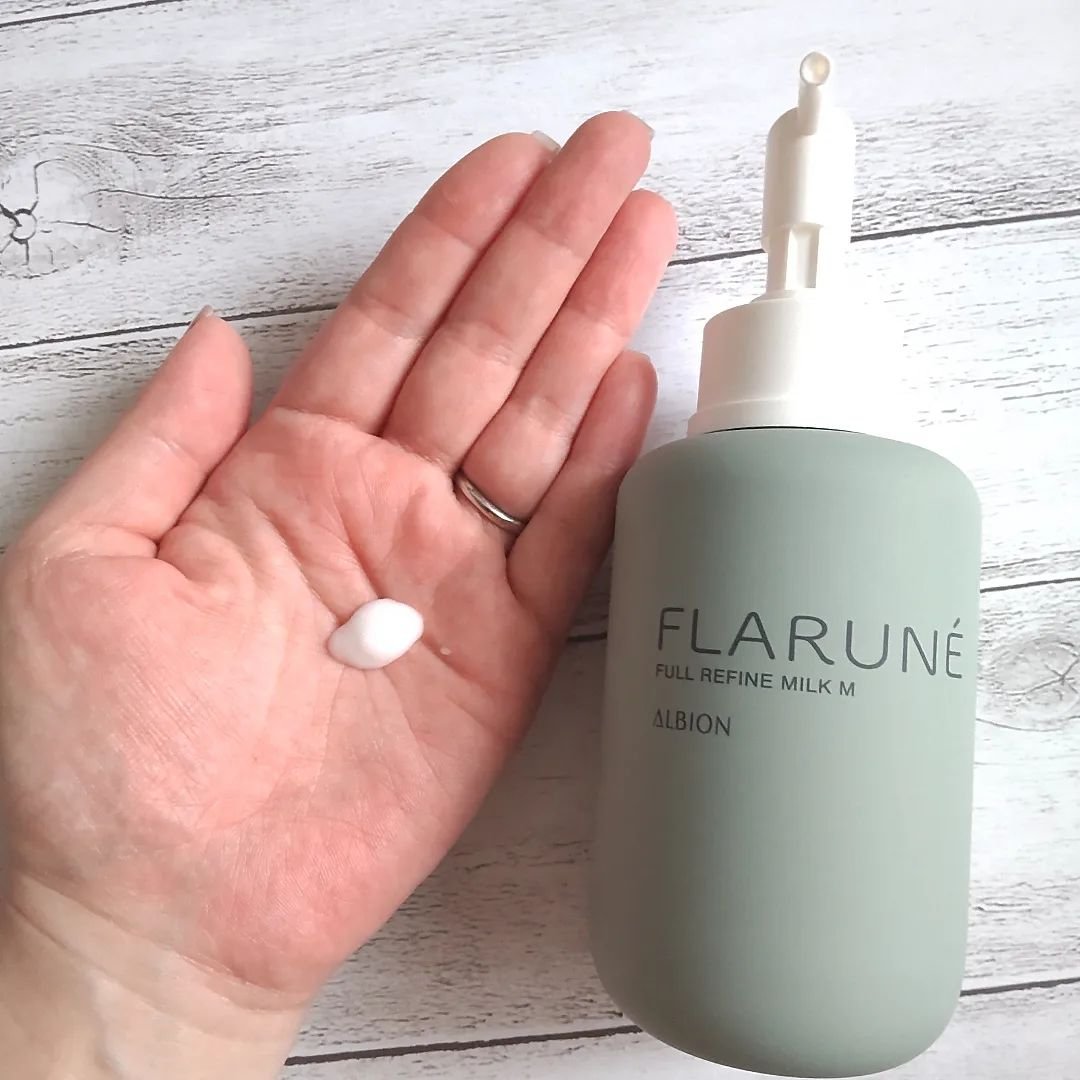 フラルネ フルリファインミルクMです💚 アルビオン フラルネ フルリファイン ミルクM リミテッドデザインキットで購入したため、めちゃくちゃお得にゲットできちゃいました お肌がなめらかになりキメが整ったように感じました! お肌の上を滑るように伸び広がり、塗り心地の良いなめらかなテクスチャー✨ 限定デザインのボトルはちょっと可愛さが増し増し🥰 ミニサイズのクレンジングと洗顔料もセットだったのでお買い得でした