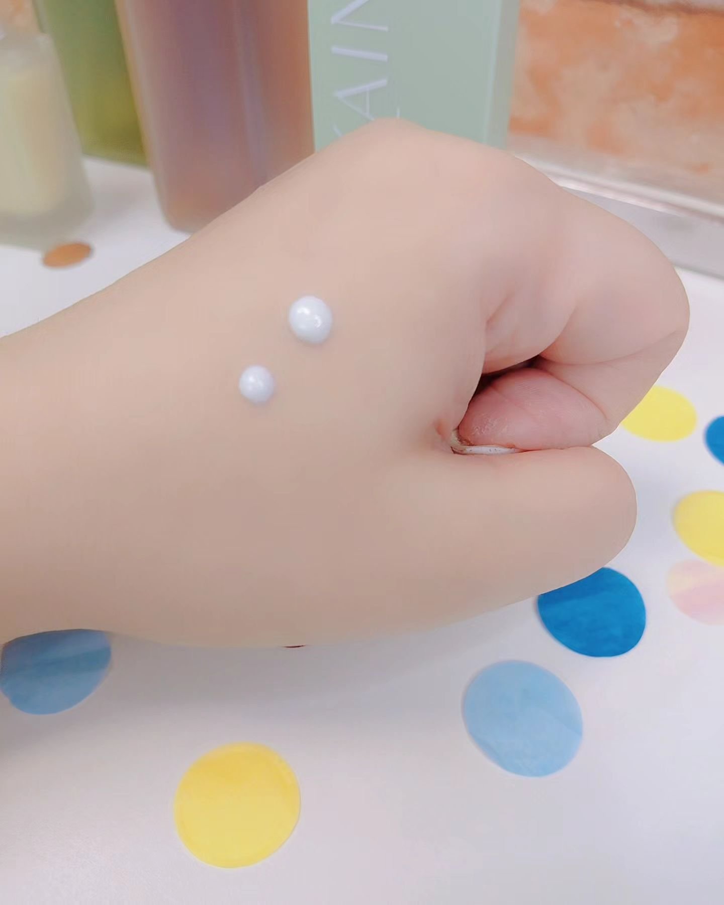 セラムをたっぷり配合したサンクリーム 水分セラムを60%入れたCICAフォーミュラが、速やかに水分を供給し、セラムのように軽い使用感と強力なUVカット、疲れたお肌を落ち着かせてくれる効果もあるんだって☝️🏻 みずみずしいウォータリーなテクスチャに、つぶつぶのカプセルがたっぷり🌟 水分感たっぷりに、みずみずしくお肌にのびて、カプセルも弾けて一緒になじんでくれるよ◎ しっとりべたつかない使い心地で、日焼け止めとは思えないツヤっとみずみずしい使用感◎ 白浮きしたり、キシキシ感もなく使えるのは推しポイント🫶🏻 日焼け止めの使用感が苦手な人にはぜひ使ってほしいナ🤍