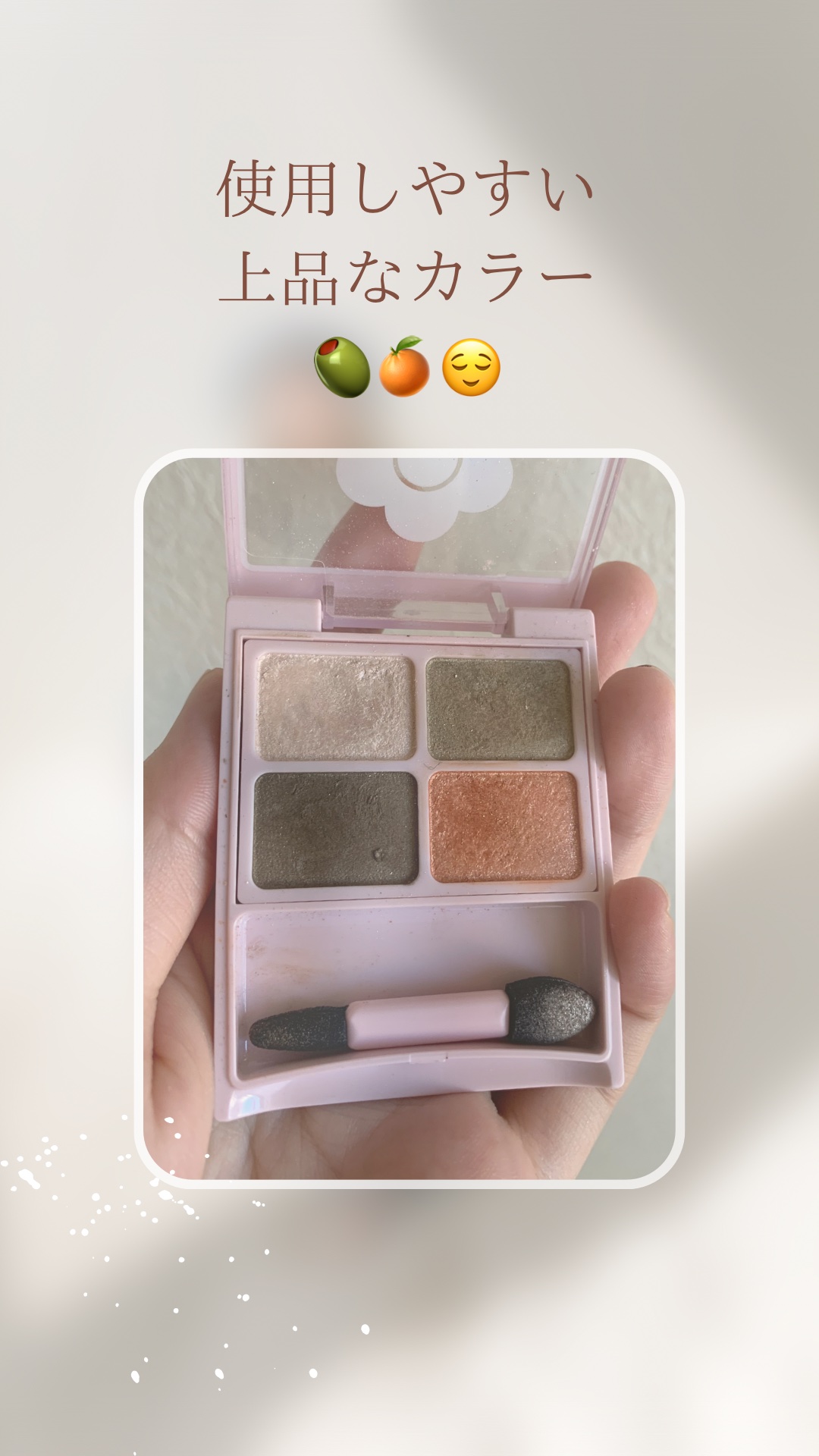 - 透け感発色と輝きを兼ね備えた4色のアイカラーパレット。重ねるごとに輝きを増し、透明感のある立体的なグラデーションアイメイクが完成。アイメイクのバリエーションを広げる高輝度ラメをon。3種の美容エモリエントオイル*配合。目元の乾燥を防ぎ、うるおいを保ちます。 *ホホバ種子油、アボカド油、メドウフォーム油