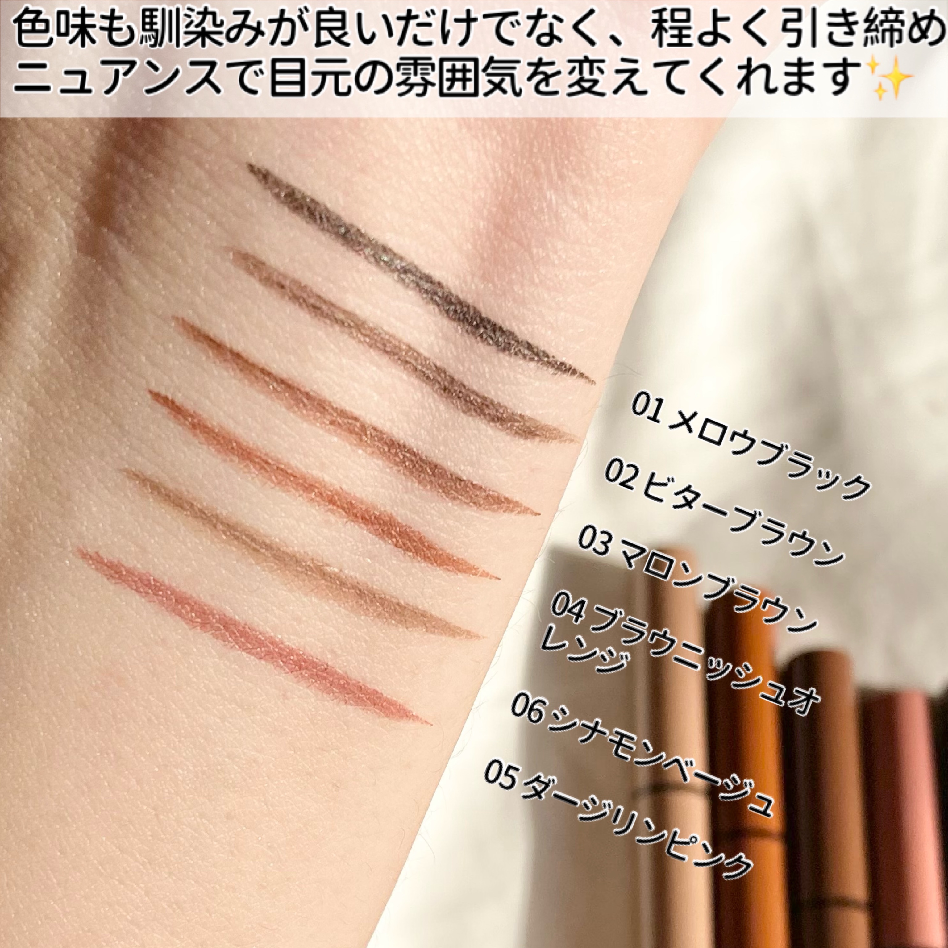 落ちにくいアイライナーといえばの1DAY TATOOから秋冬にぴったりの限定色「チョコレートムース」が登場🍫 やさしいまろやかなブラウンなのでナチュラルなアイラインが好きな方や下まぶたにも使いたい方にもおすすめです🫶 涙・こすれ・汗にも負けない「ハイブリットTATTOOフィルム」採用で、描いた瞬間ピタッと密着!