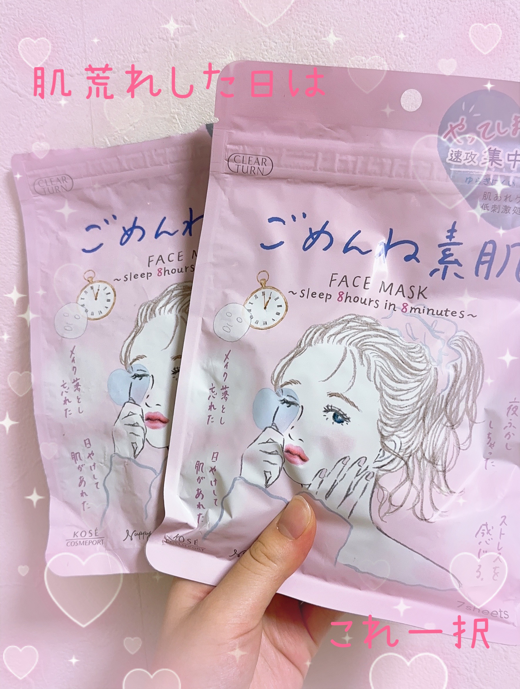 〜クリアターン ごめんね素肌キニナル〜"8分の集中ケアで8時間熟睡したような肌に"不規則な生活・睡眠不足が続いていたので購入!肌も荒れてたんですが、刺激なく悪化もすることなく使えました!水分チャージされて、毛穴も目立たなかったのと、殺菌・消炎...