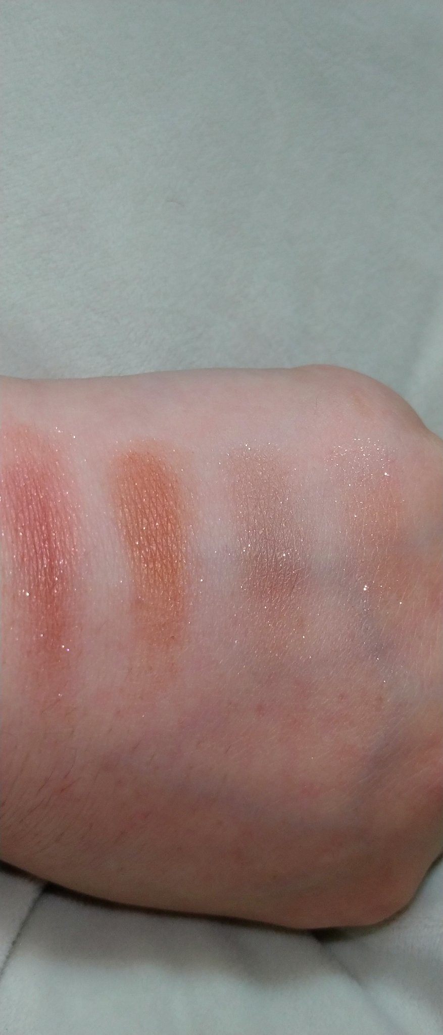 【使った商品】SUQQUシグニチャーカラーアイズ127:褐砂-KASSA<限定色>【色味】左上:ブルーグレー左下:ルビーレッド右上:ピンクベージュ右下:赤みブラウン【密着感】かなり◎【発色】かなり◎【良いところ】ラメがすごくいい粉質が最高よれ...