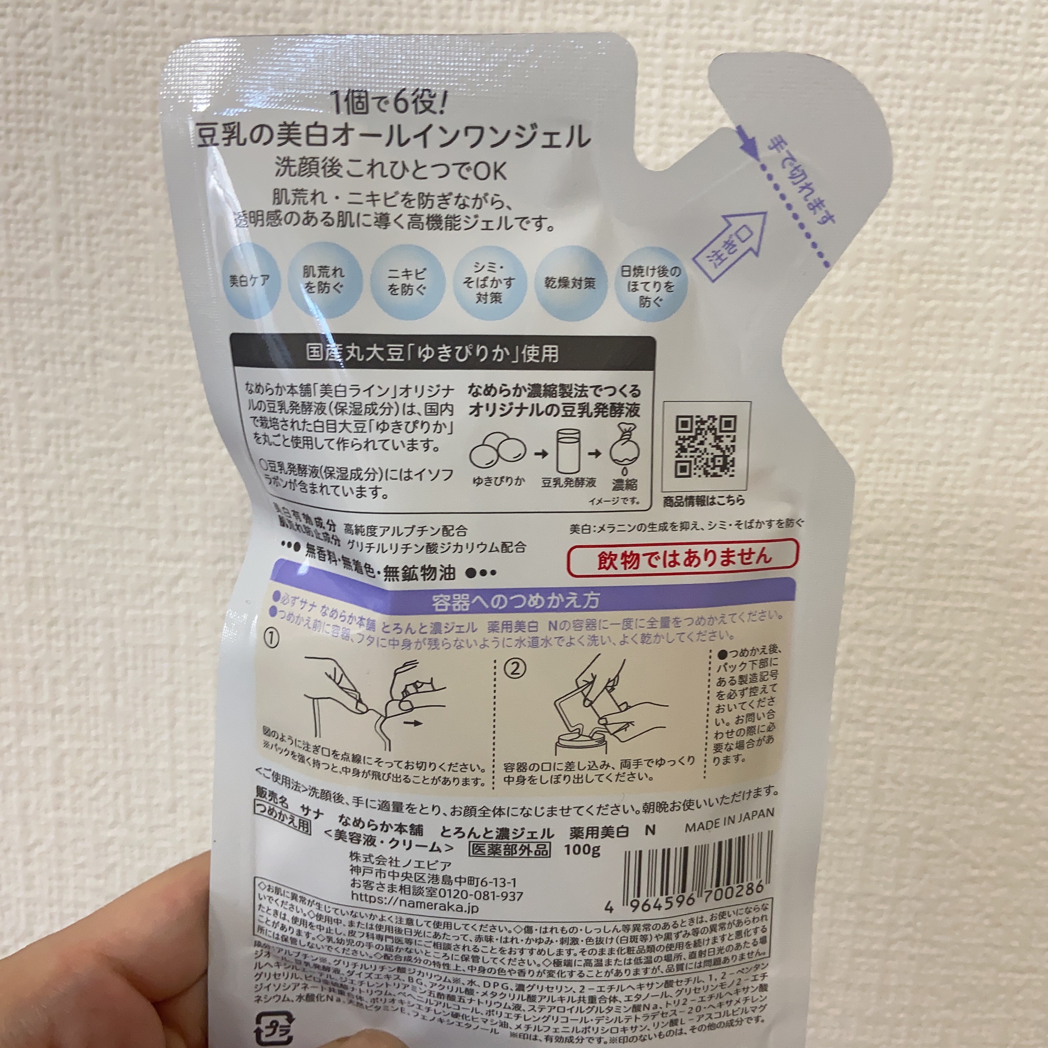 - <増量ポンプタイプ> 有効成分 アルブチン、グリチルリチン酸ジカリウム その他の成分 水、DPG、濃グリセリン、2-エチルヘキサン酸セチル、1,2-ペンタンジオール、豆乳発酵液、ダイズエキス、BG、アクリル酸・メタクリル酸アルキル共重合体、エタノール、グリセリンモノ2-エチルヘキシルエーテル、ジエチレントリアミン五酢酸五ナトリウム液、ステアロイルグルタミン酸Na、トリ2-エチルヘキサン酸グリセリル、ピロ亜硫酸ナトリウム、ベヘニルアルコール、ポリエチレングリコール・デシルテトラデセス-20・ヘキサメチレンジイソシアネート共重合体、ポリオキシエチレン硬化ヒマシ油、メチルフェニルポリシロキサン、リン酸L-アスコルビルマグネシウム、水酸化Na、天然ビタミンE、フェノキシエタノール <つめかえ用> 有効成分 アルブチン、グリチルリチン酸ジカリウム その他の成分 水、DPG、濃グリセリン、2-エチルヘキサン酸セチル、1,2-ペンタンジオール、豆乳発酵液、ダイズエキス、BG、アクリル酸・メタクリル酸アルキル共重合体、エタノール、グリセリンモノ2-エチルヘキシルエーテル、ジエチレントリアミン五酢酸五ナトリウム液、ステアロイルグルタミン酸Na、トリ2-エチルヘキサン酸グリセリル、ピロ亜硫酸ナトリウム、ベヘニルアルコール、ポリエチレングリコール・デシルテトラデセス-20・ヘキサメチレンジイソシアネート共重合体、ポリオキシエチレン硬化ヒマシ油、メチルフェニルポリシロキサン、リン酸L-アスコルビルマグネシウム、水酸化Na、天然ビタミンE、フェノキシエタノール <本体> 有効成分 アルブチン、グリチルリチン酸ジカリウム その他の成分 水、DPG、濃グリセリン、2-エチルヘキサン酸セチル、1,2-ペンタンジオール、豆乳発酵液、ダイズエキス、BG、アクリル酸・メタクリル酸アルキル共重合体、エタノール、グリセリンモノ2-エチルヘキシルエーテル、ジエチレントリアミン五酢酸五ナトリウム液、ステアロイルグルタミン酸Na、トリ2-エチルヘキサン酸グリセリル、ピロ亜硫酸ナトリウム、ベヘニルアルコール、ポリエチレングリコール・デシルテトラデセス-20・ヘキサメチレンジイソシアネート共重合体、ポリオキシエチレン硬化ヒマシ油、メチルフェニルポリシロキサン、リン酸L-アスコルビルマグネシウム、水酸化Na、天然ビタミンE、フェノキシエタノール