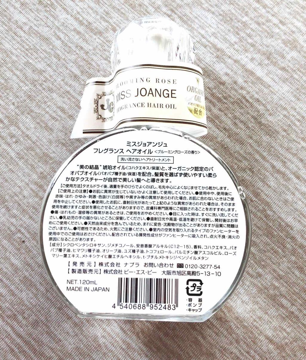 ミスジョアンジュフレグランスヘアオイルNコットンリリィの香り甘い香りでお気に入りのヘアオイルです。ヘアオイルがないタイプのシャントリで洗う時に使っています。...