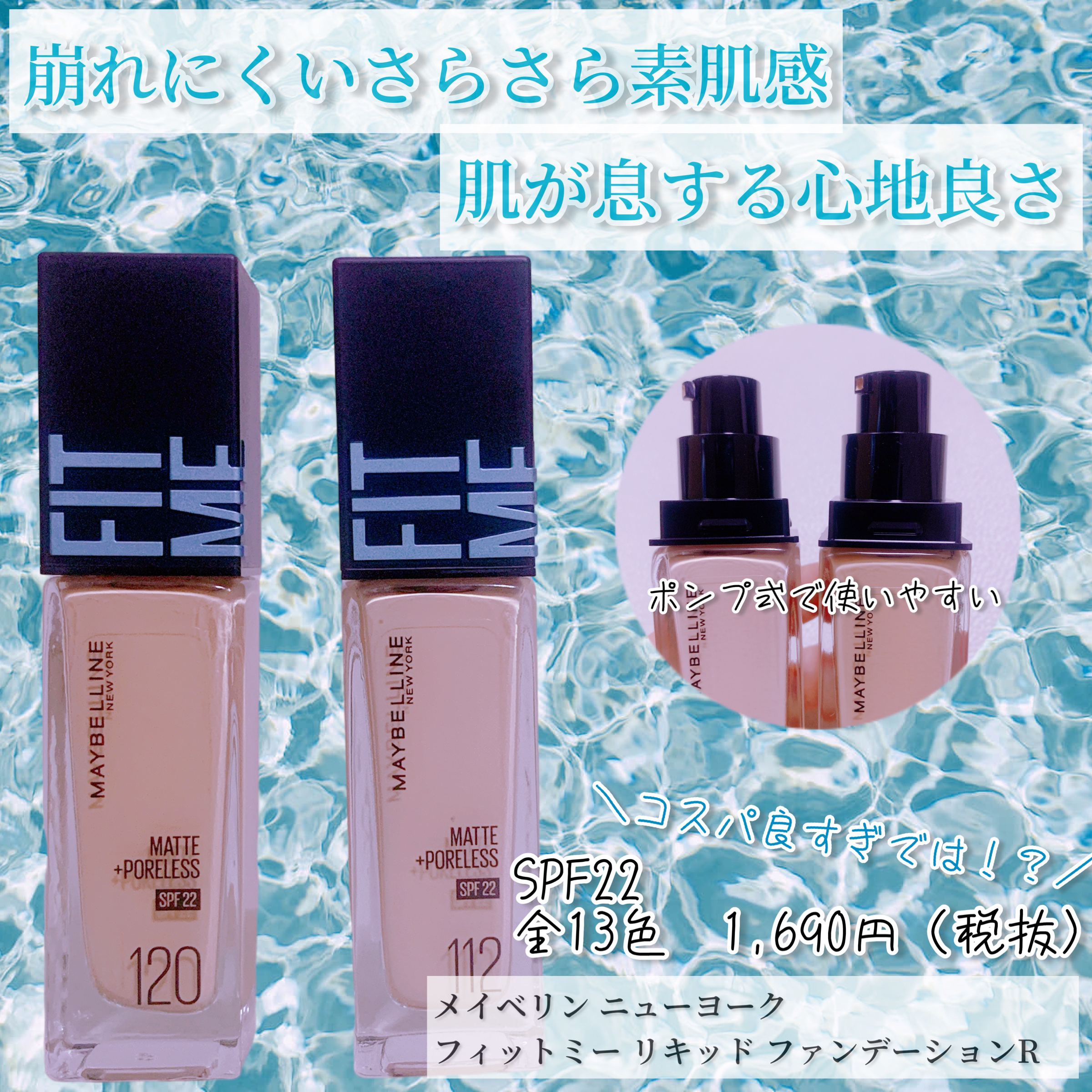 滝汗の季節、衣替えは洋服だけじゃない!🎀item🎀MAYBELLINENEWYORKフィットミーリキッドファンデーションR112/120各¥1,991(税込)夏は他の時期とメイクのお悩みも違うよね~。ということでおすすめなのがこれ!薄づきなん...