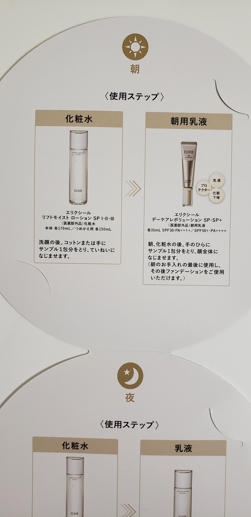 かなりしっとり! 朝用乳液(デーケアレボリューション)はSPF50+/PA++++ フローラル系の香り。 リフトモイストローションはとろみのあるテクスチャーで、かなりしっとりする化粧水です。 じっくりなじませると肌のゴワつきや乾燥が和らいで、手に肌が吸い付くような柔らかなもっちり肌に。 リフトモイストエマルジョンは瑞々しい乳液で、サラッとのびます。 ベタつかないのに、保湿力は◎。
