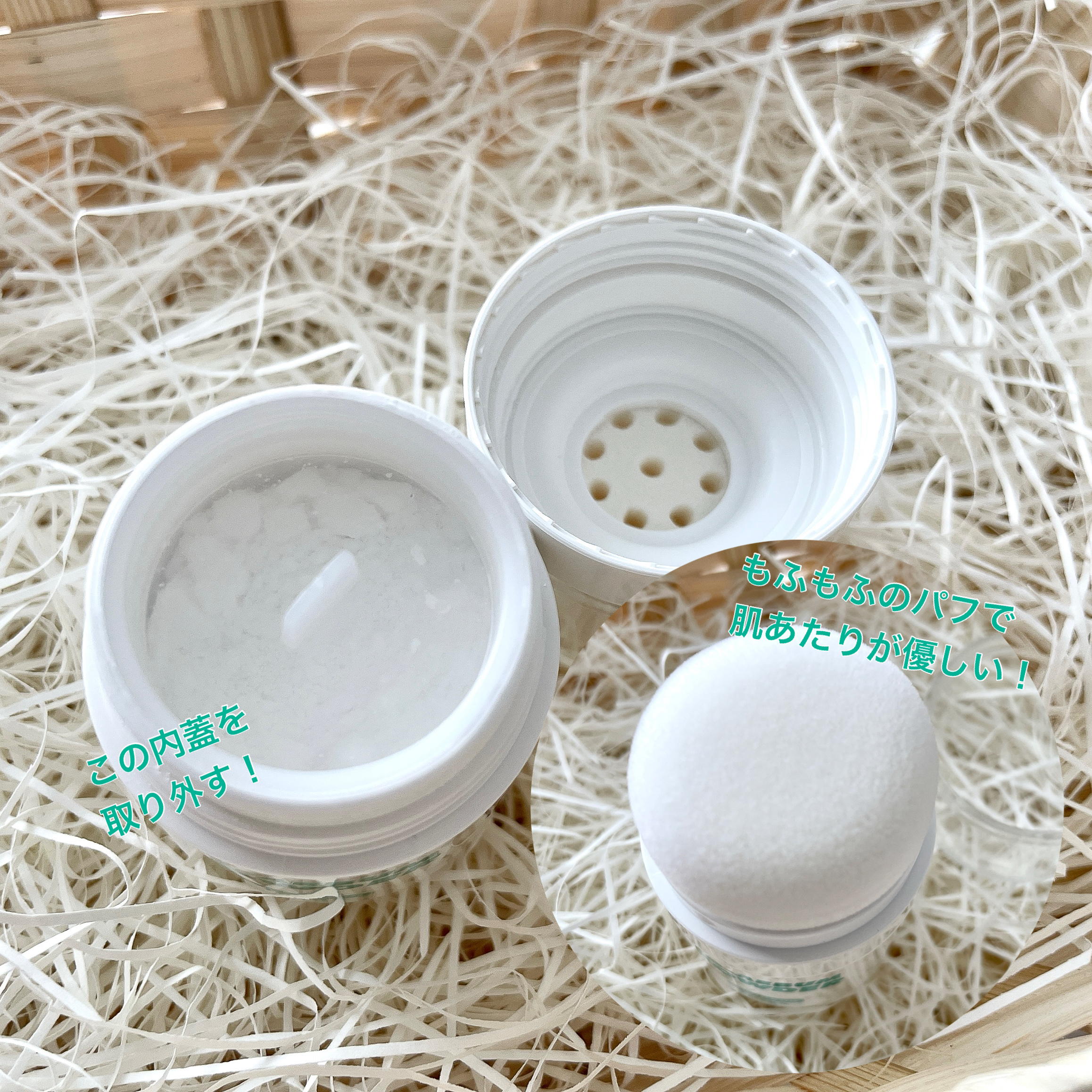 水分を含んだアロエ粉末・ツボクサエキス・ティーツリーエキスが配合されたパウダーとのことで、私はメイク前にスキンケアの仕上げとして使っています✨️ 肌も自然に綺麗に見えるのに、スキンケアにも役立てられちゃうだなんて素敵だと感じているんです〜!☺️ 汗をかきやすい肘・膝の内側、手足の裏など様々な部位にはたくことで、サラッとさわやかに保てます✨️