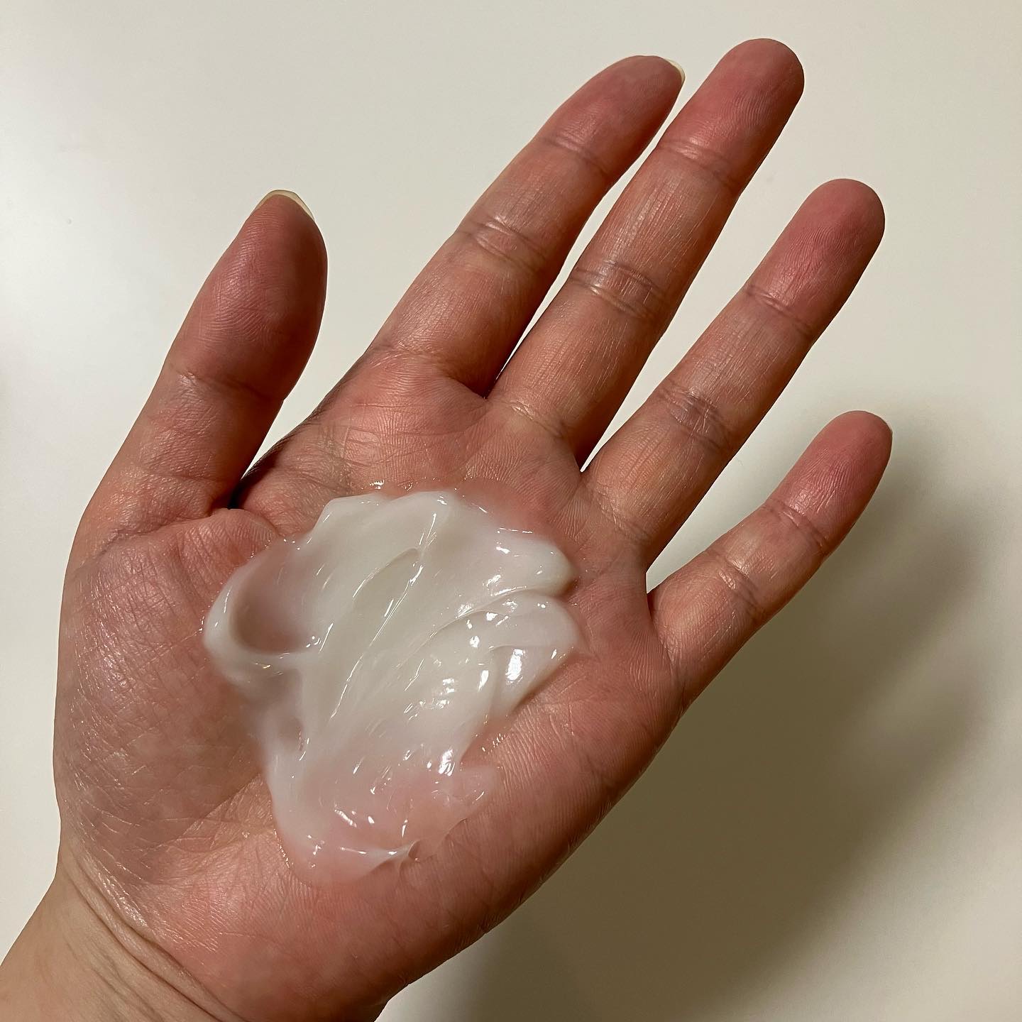 テクスチャーは柔らかめでみずみずしいです。とても伸びが良く、肌馴染みが良いです。いつまでもぺたぺたせず、塗った後はさらっとした質感で化粧下地として使えます。 パウダリーな仕上がりは有難いです! しかも潤いは残ってくれるので冷房の効いている部屋でもカサカサする感じはありませんでした。 混合肌の私はTゾーンが特にテカリやすいので、潤いを保ちつつ脂っぽさを抑えてくれるのは嬉しい!
