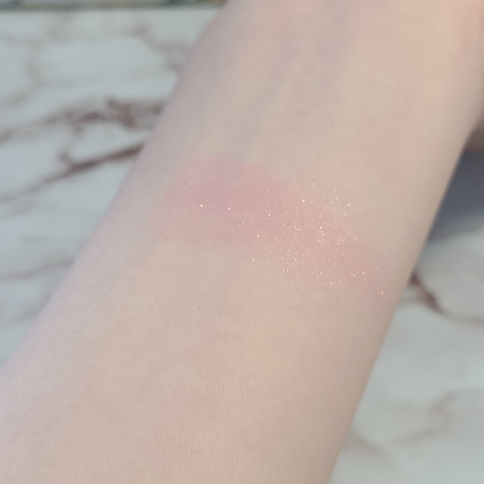 どちらも粉飛びすることはないけど、わりと軽い粉質なので目元に塗るときはアイシャドウベースを塗った方がいいかも? マルチパレットだからこれ1つでアイシャドウ、チーク、ハイライト完成します☺️ 白みピンクはわりと発色柔らかめなのでチークに使えそう!粒々の集合体はわりと濡れ感のあるラメでお気に入りになりました✨ 全体的に色味が少ない印象なので、儚げなメイクに合いそうですね😃💕 本当はヌーディーピンクが本命だったのですが、実際届いたら、ついでに買ったこちらのアッシュピンクの方が気に入ってしまいました笑 色味も捨て色がないし、何よりラメが大優勝でした! ヌーディーピンクの粒々と同じ位置にあるおラメさん。。。可愛すぎます。。。 ヌーディーピンクのラメと同じく濡れ感のあるテクスチャーです! パレットだとシルバーっぽいラメだと感じるのですが、実際腕に出してみるとベースが少しくすんだピンク味のある淡いブラウンなんです! 動画のスウォッチを見ていただくとわかると思うのですが、密着度高めでラメの輝き方も綺麗でした😭