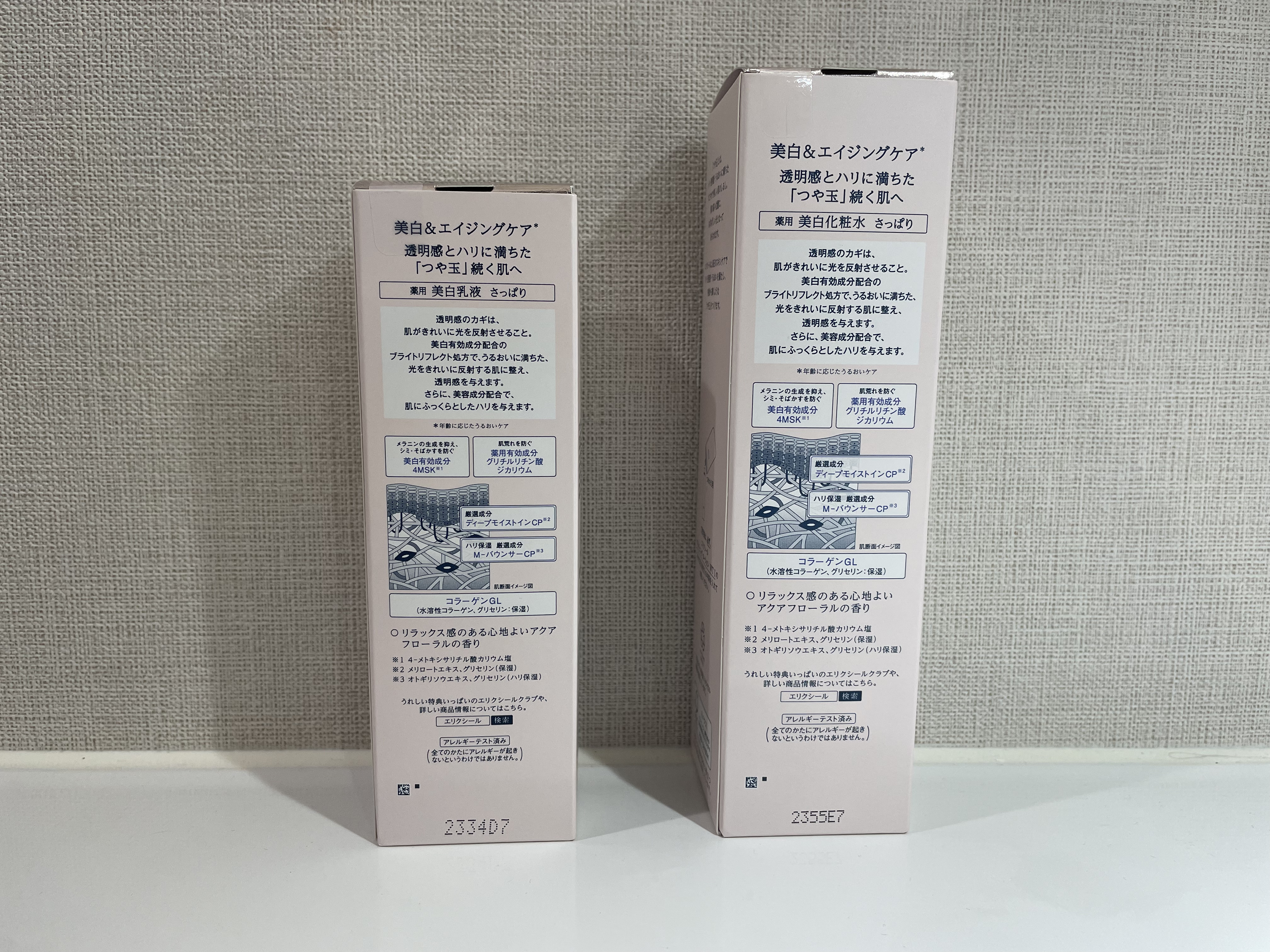 資生堂独自の美白有効成分4MSKが配合されてる事がまず嬉しい。 Ⅰのさっぱりは、シャバシャバさっぱり系。水のような感触。ほんのりフローラルな香りは、匂いに敏感な私にもちょうど良い◎ これから夏のシーズンでさっぱりした使用感の方が好みだったので選んだけど、Ⅱしっとりのややとろみのあるテクスチャも乾燥時期にはいいかも。Ⅲはとろみの塩梅が私としては強かった印象。 同じくさっぱりタイプを選んだので瑞々しい柔らかい乳液。朝晩基本のスキンケアとして1年中使いたい。