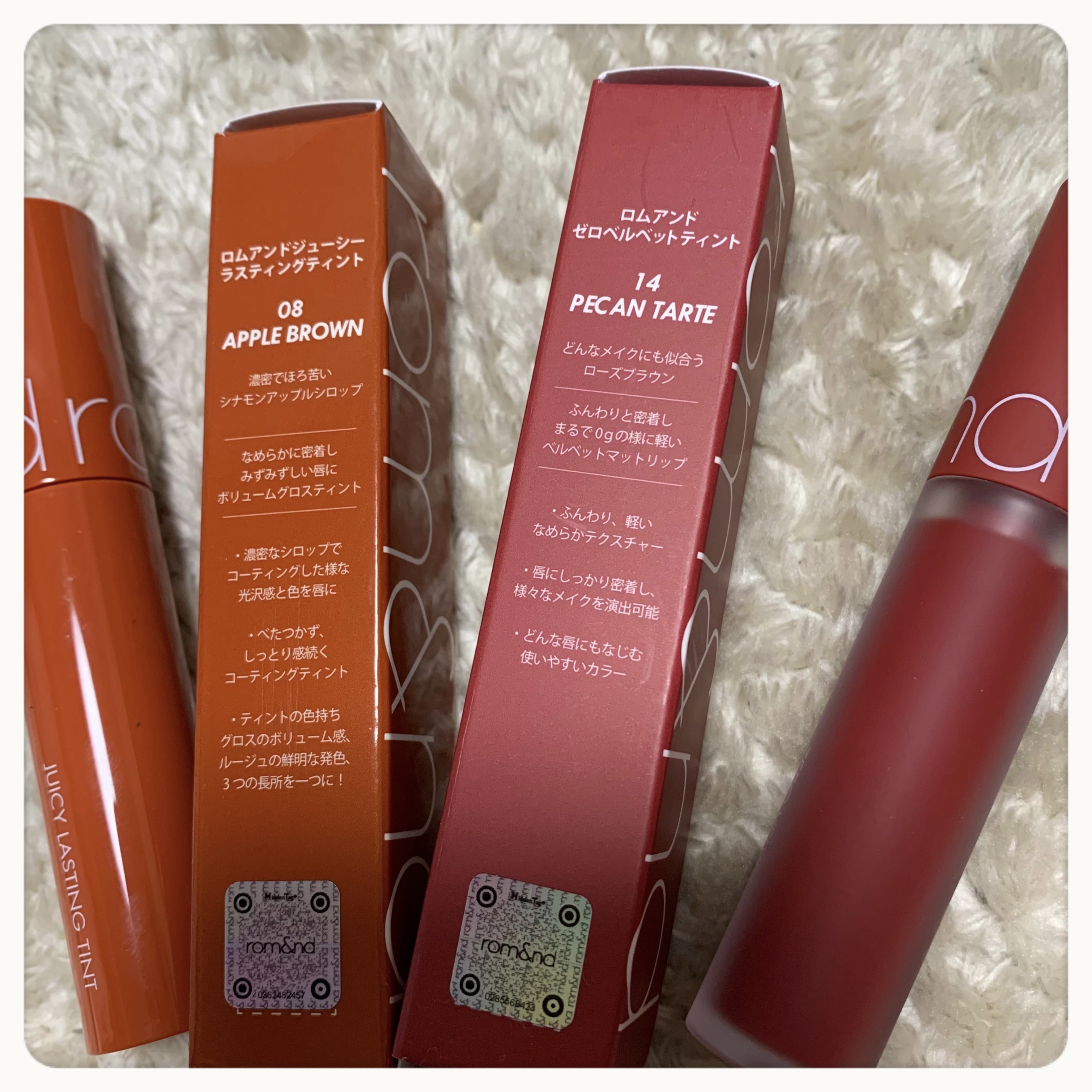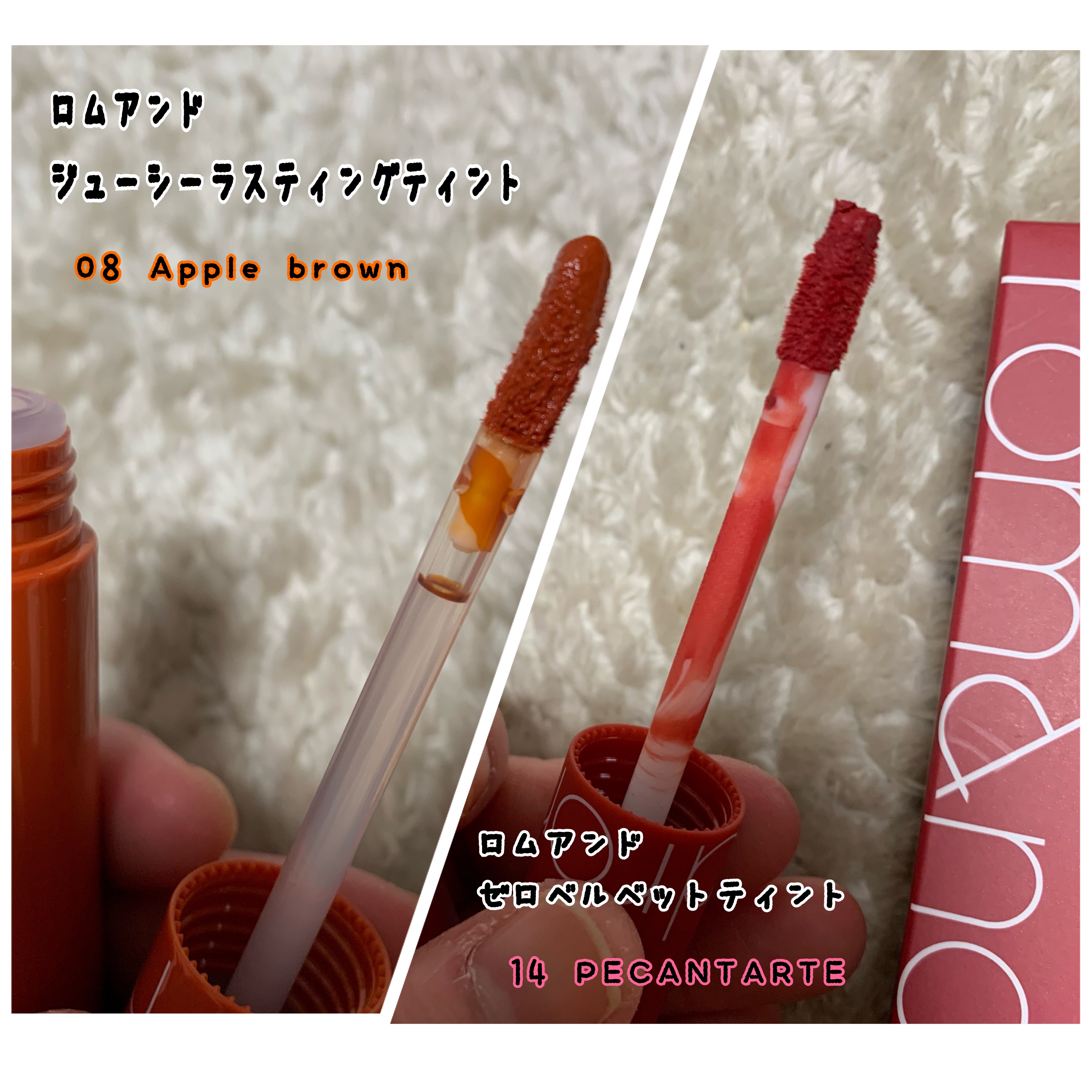 rom&ndのティント大人気ですよね!その中でも私のお気に入りはこの3色♡【rom&nd】ザジューシーラスティングティント03ベアグレープ20ジュジュフィグ23ピーチピーチミーどれも使用頻度高めですᐡᵒ̴ᵕᵒ̴ᐡ特に23番は流行りのうさぎ舌リ...
