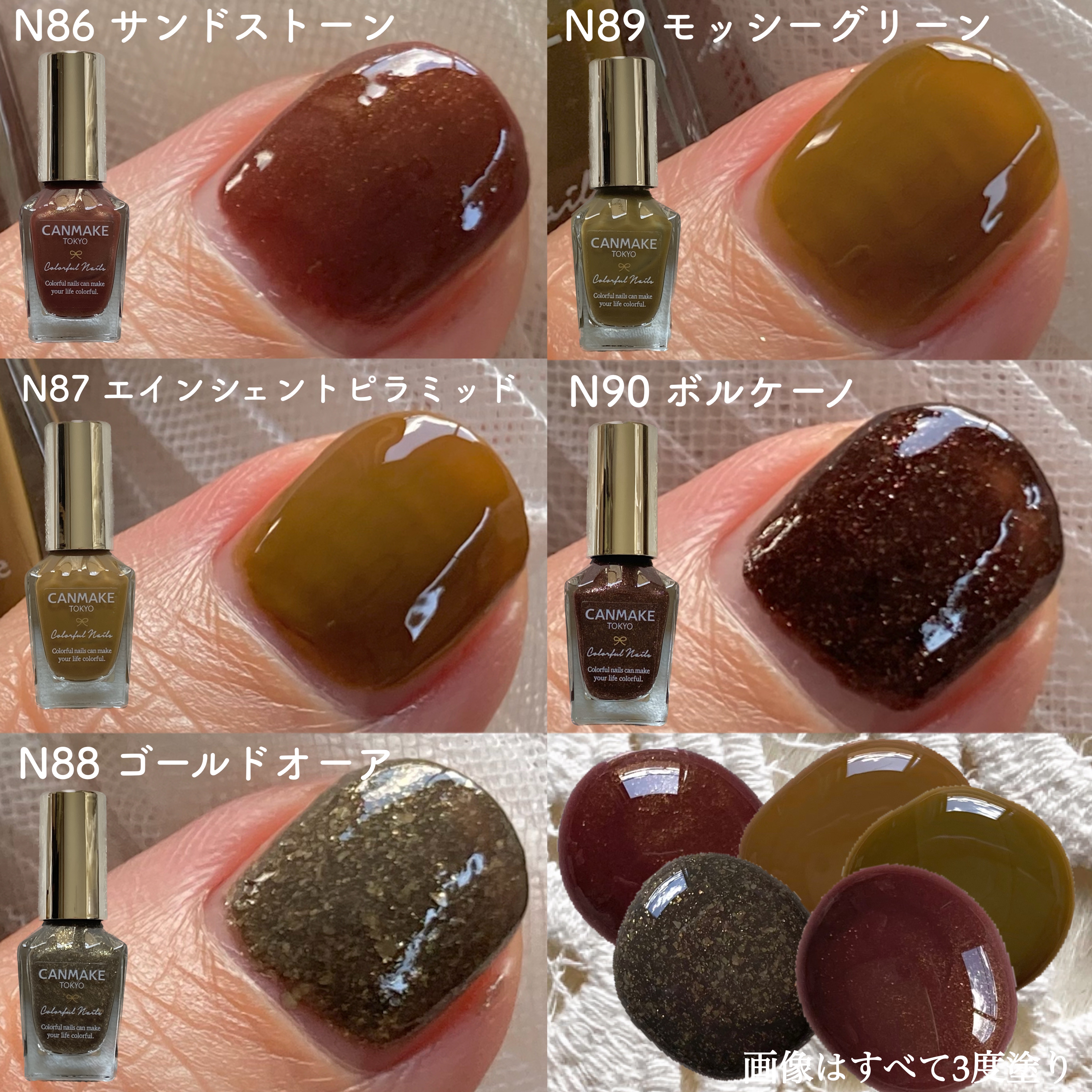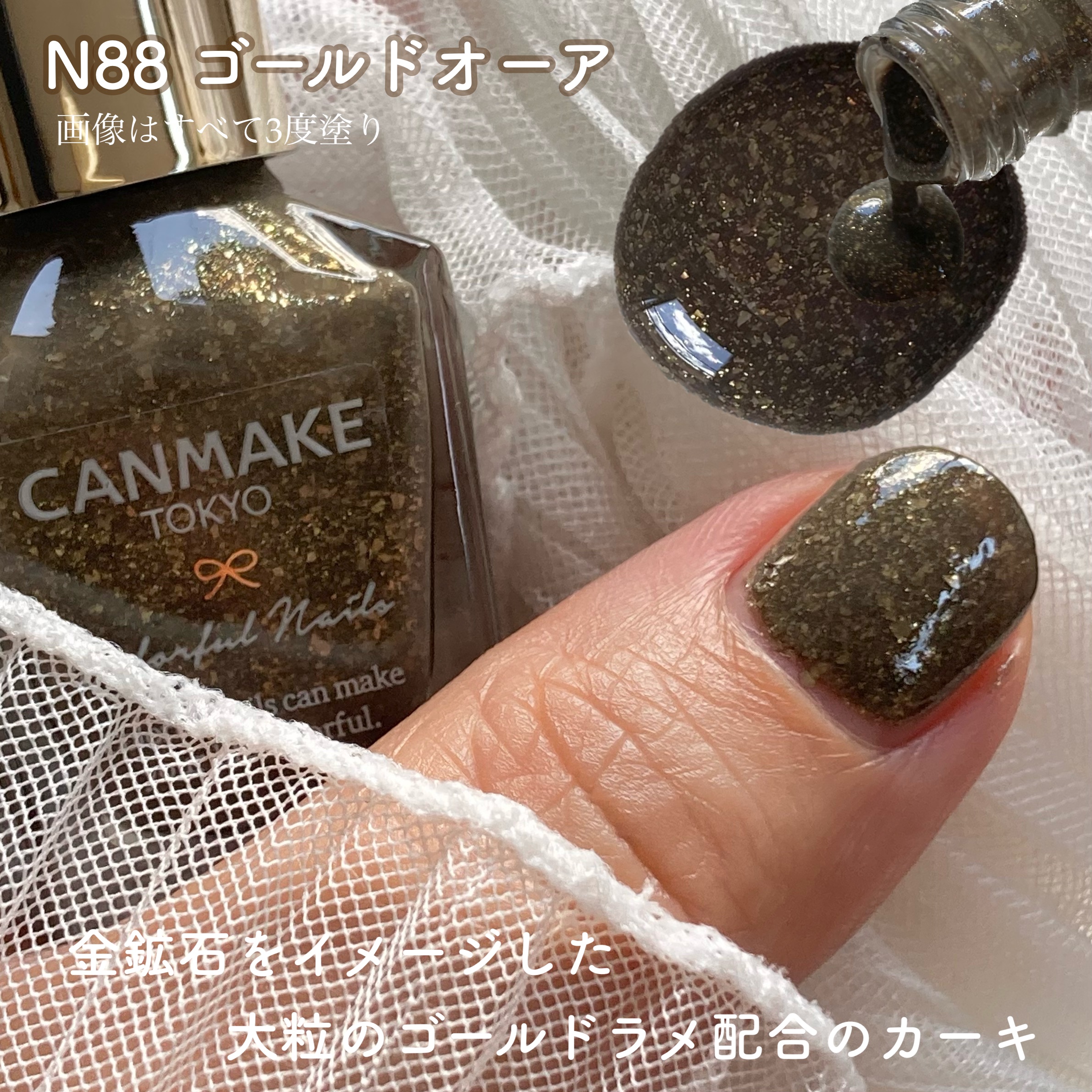 【今週のネイル】CANMAKEカラフルネイルズの2色を使用しました♡♥·.⟡使用カラー⟡.··.⟡⎯⎯⎯⎯⎯⎯⎯⎯⎯⎯⎯⎯⟡.·🧡N60アンティークアンバー︎︎︎︎✔︎︎︎︎ゴールドと赤の偏光パールがちらちらと輝く琥珀色❤️N86サンド...