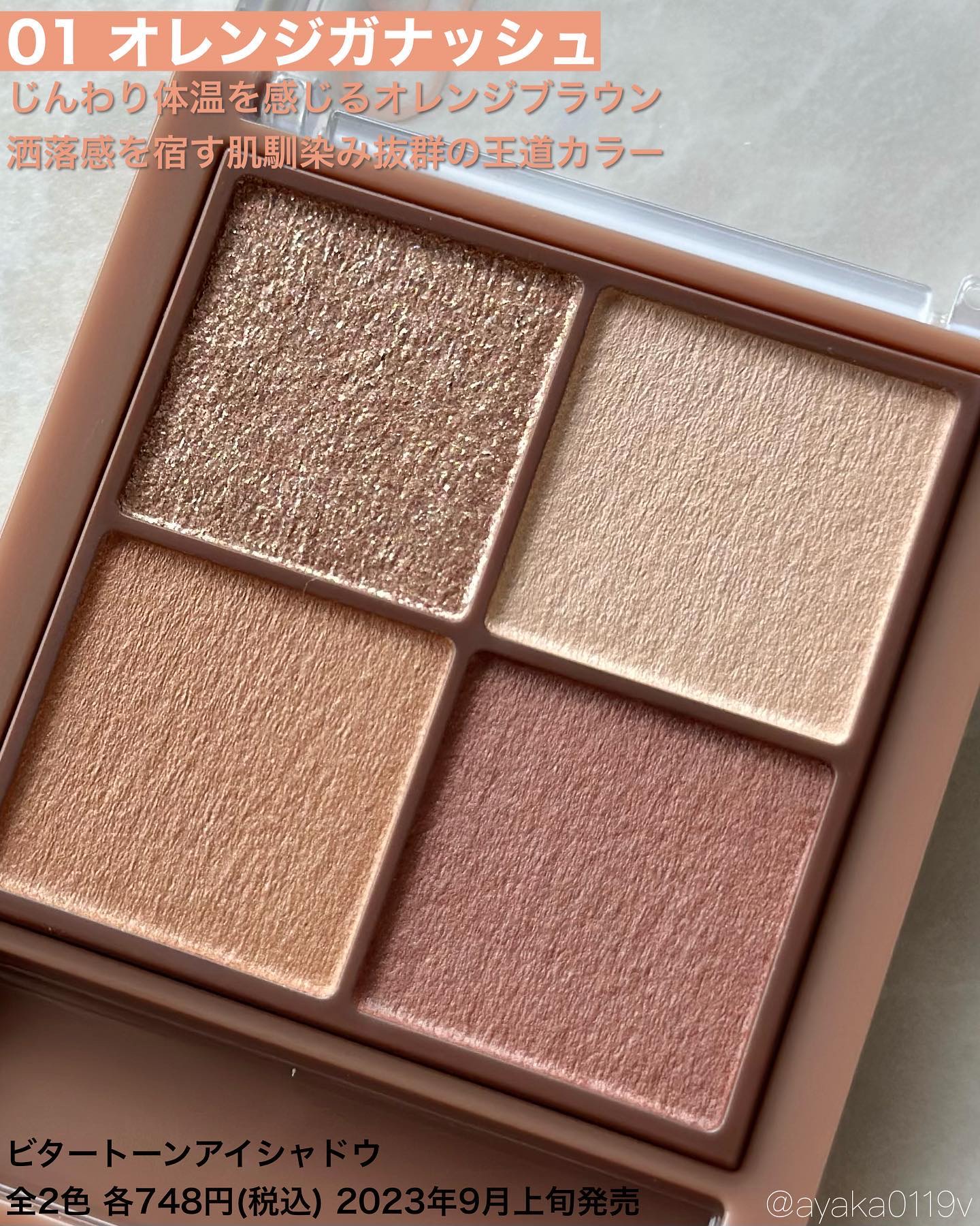 - 01 オレンジガナッシュ A:ジメチコン、タルク、トリ(カプリル酸/カプリン酸)グリセリル、(ジメチコン/ビニルジメチコン)クロスポリマー、カルナウバロウ、クロルフェネシン、デヒドロ酢酸Na、ラウロイルリシン、トコフェロール、スクワラン、ホホバ種子油、マイカ、ホウケイ酸(Ca/Al)、酸化チタン、酸化鉄、酸化スズ、シリカ B・C・D:タルク、リンゴ酸ジイソステアリル、ジメチコン、ジエチルヘキサン酸ネオペンチルグリコール、シリカ、ヘキサ(ヒドロキシステアリン酸/ステアリン酸/ロジン酸)ジペンタエリスリチル、クロルフェネシン、デヒドロ酢酸Na、水酸化Al、セスキイソステアリン酸ソルビタン、ミリスチン酸亜鉛、トコフェロール、スクワラン、ホホバ種子油、マイカ、酸化鉄、酸化チタン、赤226、硫酸Ba 02 ドライローズ A:ジメチコン、タルク、トリ(カプリル酸/カプリン酸)グリセリル、(ジメチコン/ビニルジメチコン)クロスポリマー、カルナウバロウ、クロルフェネシン、デヒドロ酢酸Na、ラウロイルリシン、トコフェロール、スクワラン、ホホバ種子油、マイカ、ホウケイ酸(Ca/Al)、酸化チタン、酸化鉄、酸化スズ、グンジョウ B・C・D:タルク、リンゴ酸ジイソステアリル、ジメチコン、ジエチルヘキサン酸ネオペンチルグリコール、シリカ、ヘキサ(ヒドロキシステアリン酸/ステアリン酸/ロジン酸)ジペンタエリスリチル、クロルフェネシン、デヒドロ酢酸Na、水酸化Al、セスキイソステアリン酸ソルビタン、ミリスチン酸亜鉛、トコフェロール、スクワラン、ホホバ種子油、マイカ、酸化鉄、酸化チタン、赤226、硫酸Ba、グンジョウ 03 ビスケットブラウン A:ジメチコン、タルク、トリ(カプリル酸/カプリン酸)グリセリル、(ジメチコン/ビニルジメチコン)クロスポリマー、カルナウバロウ、クロルフェネシン、デヒドロ酢酸Na、ラウロイルリシン、トコフェロール、スクワラン、ホホバ種子油、マイカ、ホウケイ酸(Ca/Al)、酸化チタン、酸化鉄、酸化スズ B・C・D:タルク、リンゴ酸ジイソステアリル、ジメチコン、ジエチルヘキサン酸ネオペンチルグリコール、シリカ、ヘキサ(ヒドロキシステアリン酸/ステアリン酸/ロジン酸)ジペンタエリスリチル、ミリスチン酸亜鉛、クロルフェネシン、デヒドロ酢酸Na、水酸化Al、セスキイソステアリン酸ソルビタン、トコフェロール、スクワラン、ホホバ種子油、マイカ、酸化鉄、酸化チタン、硫酸Ba