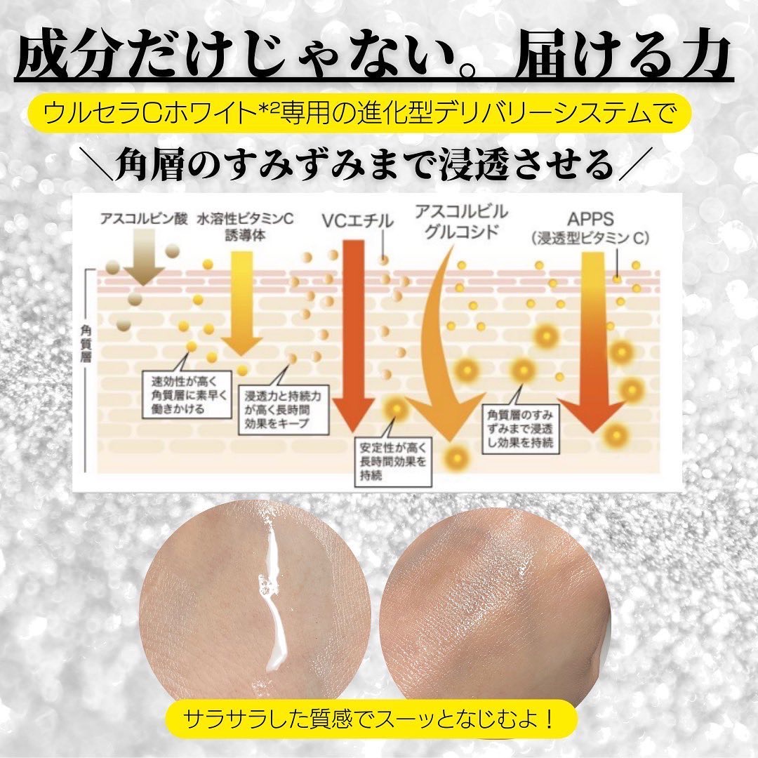 - 生ビタミン C(VC エチル)をはじめ、浸透型*1ビタミン C(APPS)*2、水溶性ビタミンC誘導体*3、アスコルビン酸の4種類のビタミンC(全て整肌成分)を配合。 肌に潤いを与え、透明感のある肌へ導きます。 *1角質層まで *2パルミチン酸アスコルビルリン酸3Na *3リン酸アスコルビルMg