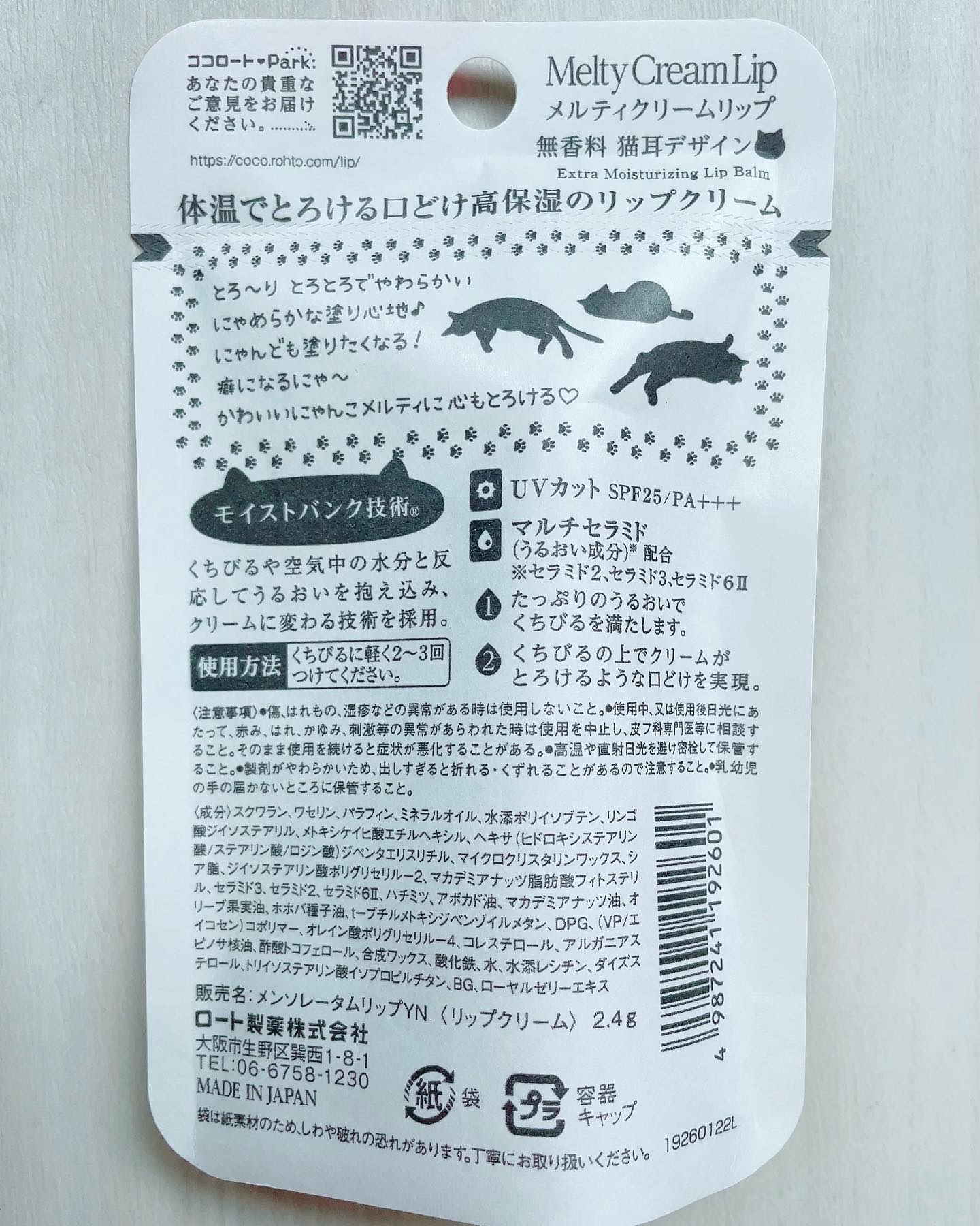 - くちびるや空気中の水分と反応してうるおいを抱え込み、クリームに変わる「モイストバンク技術」を採用。まるでクリームがとろけるような、これまでにない、やわらかくなめらかな塗り心地。ひと塗りすれば、体温でとろけてくちびるへなじみ、最上級*のうるおい感で守ります。 UVカット(SPF25/PA+++)。マルチセラミド(うるおい成分)※配合。*:メンソレータムリップシリーズ内※:セラミド3、セラミド2、セラミド6II