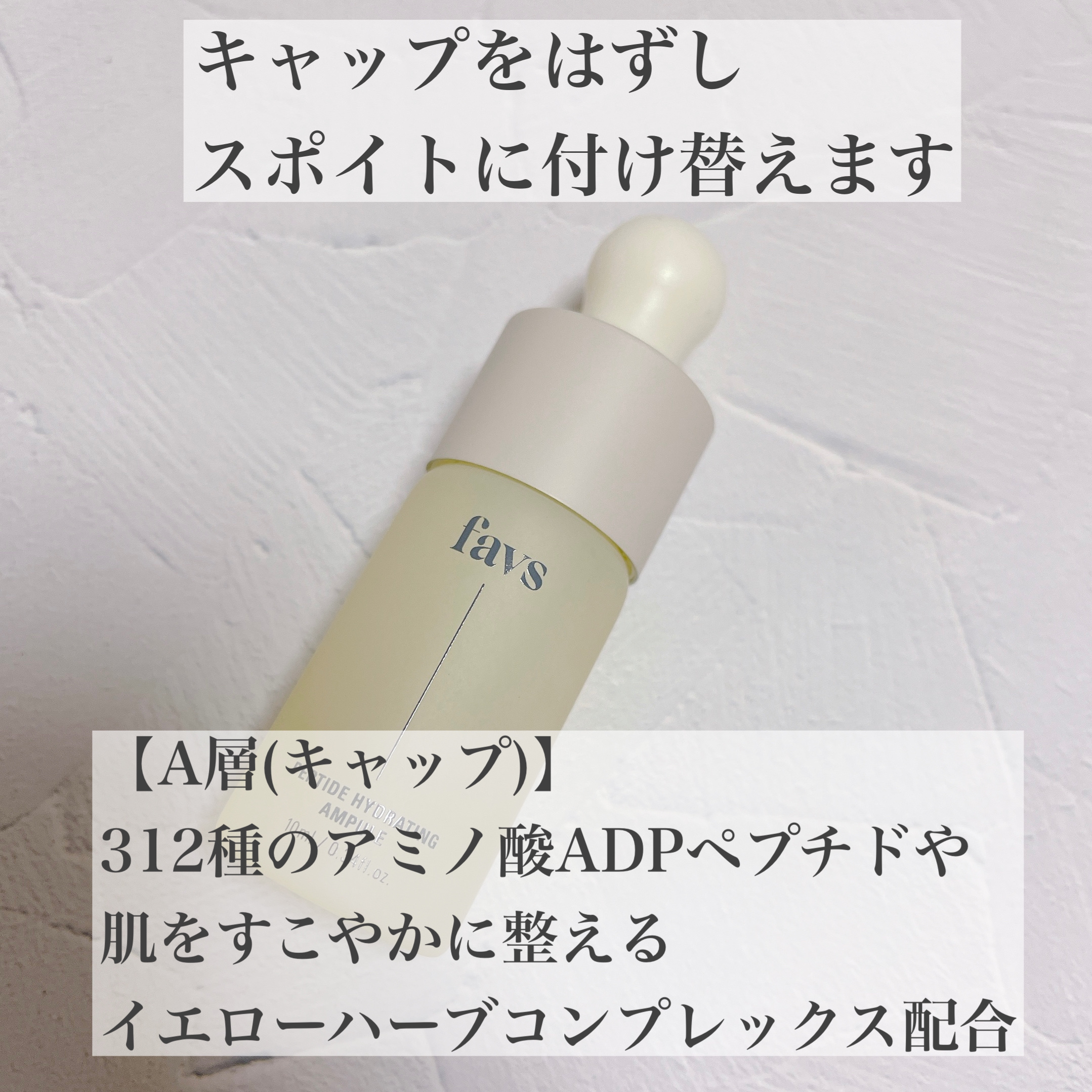 favsペプチドハイドレーティングアンプルツヤ、ハリ感が欲しい方、エイジングケア**がしたい方におすすめの集中ケアアンプル✨ベタつかず肌馴染みの良いテクスチャーのアンプルは塗った瞬間からなめらかな肌触りになるのが気持ち良い🥹🤍ペプチド*、アミ...