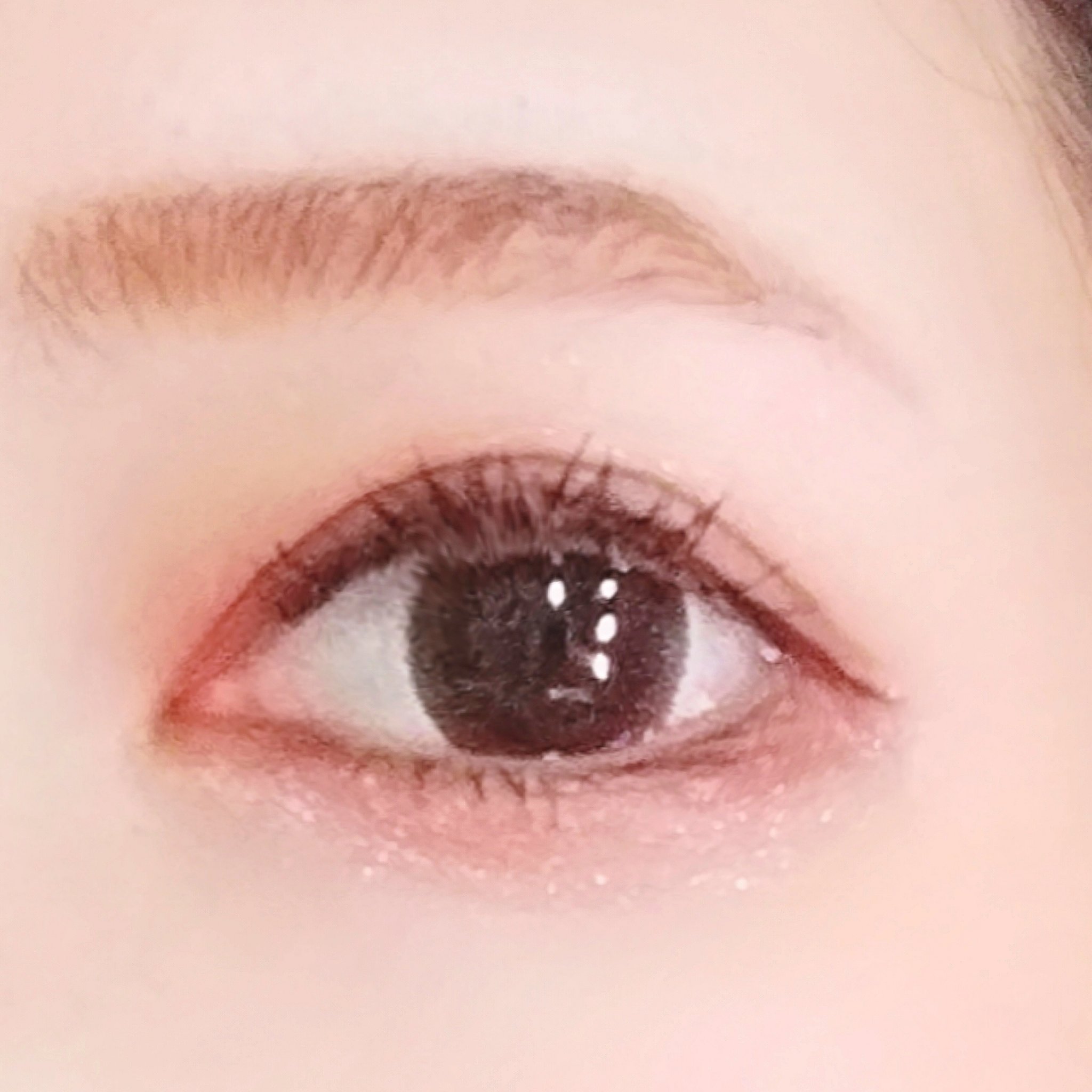 ブラウンフォンデュの名前のとおり、とろけるような甘いナチュラル可愛い瞳になります! わずとらしさは無く、自然にくりっと見せてくれるました♡ ほんのり、トーンアップもしましたが 元が茶目さんだと、少し周りの縁が自分の目より暗くハッキリして 黒目さんだと本当に裸眼に近いナチュラルな感じだと思います。 体感的には着色サイズ的の数字より少し小さく感じるぐらいで、ぼやけ縁が綺麗で自然なサイズアップになりました(^^ ナチュラルメイクの日に沢山付けたいカラコンです♪