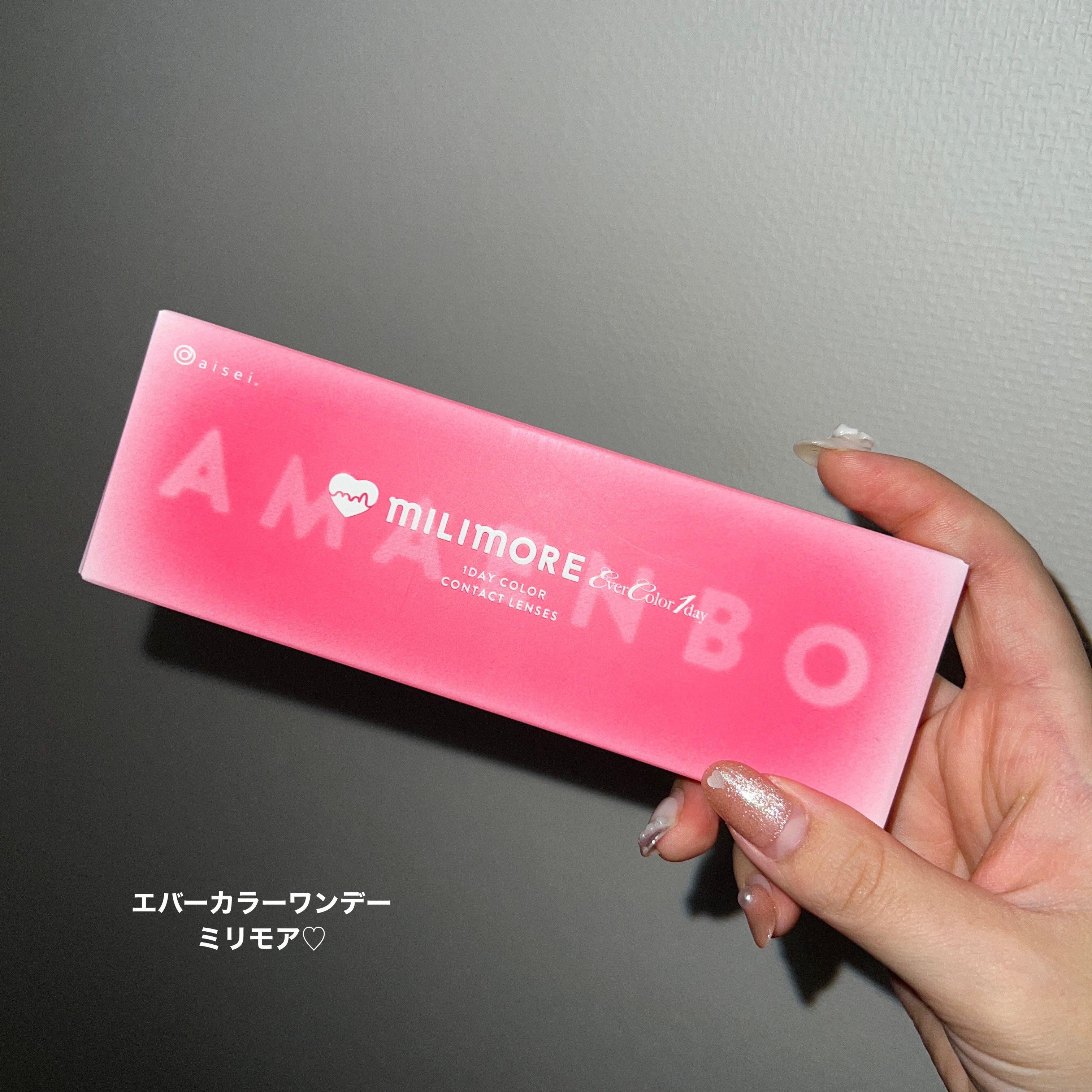 - 【商品特長】 「1mmでももっとかわいくなりたい」 エバーカラーワンデーシリーズ定番商品では初となるDIA14.2mm。 かわいさと着け心地の良さにこだわった、あざと可愛く盛れるラインナップ。 【製品スペック】 □販売名:ミリモア □装用期間:1日使い捨てタイプ □入数:1箱 10枚入 □BC:8.7mm □DIA:14.2mm □含水率:60.0% □中心厚:0.08mm(-3.00Dの場合) □PWR:±0.00( 度なし )/-0.50~-5.00( -0.25Step )/-5.50~-8.00( -0.50Step ) □承認番号:30200BZX00014A04 □製造販売元:株式会社アイレ □販売元:株式会社アイセイ カラーコンタクトレンズの不適正使用による眼障害の危険性等などがあります。 ●コンタクトレンズは高度管理医療機器です。不十分な洗浄・消毒など不適切なケアや、長時間・交換期間を超えた装用により、アレルギー性結膜炎、角膜感染症、角膜潰瘍等の重篤な眼障害が発生する危険性があります ●ご使用前に取扱説明書を確認してください 使用上の留意事項 ●眼科医院等を受診してからお求めください ●眼に異常を感じたら直ちにレンズ使用を中止し、お近くの眼科等で診察を受けてください ●医師の指示にしたがってご使用ください ●コンタクトレンズを装用する場合、自覚症状がなくても、眼科医院等での定期検査を受けてください ●レンズに不具合がある場合は使用しないでください