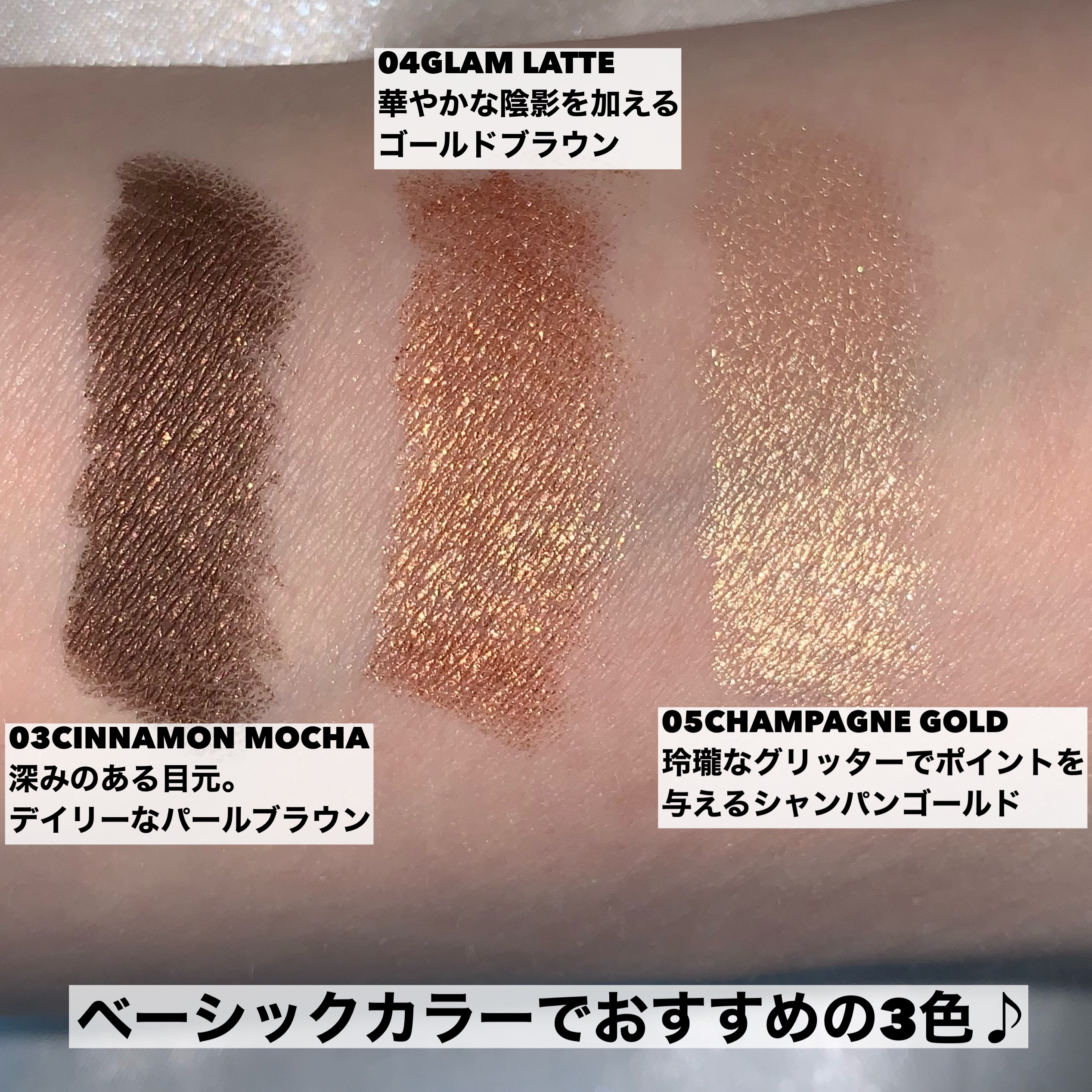 - <01 MIDNIGHT BLACK> トリメチルシロキシケイ酸、シクロペンタシロキサン、酸化鉄、ホウケイ酸(Ca/チタン),イソドデカン、ポリエチレン、合成ワックス、セレシン,トリイソステアリン酸ポリグリセリル-2、酸化チタン、ポリイソブテン、酸化スズ <02 CHIC NAVY> トリメチルシロキシケイ酸、シクロペンタシロキサン、酸化鉄、イソドデカン,ポリエチレン、酸化チタン、マイカ、合成ワックス,ホウケイ酸(Ca/Na)、セレシン、シリカ,トリイソステアリン酸ポリグリセリル-2、ポリイソブテン、コンジョウ <03 CINNAMON MOCHA> トリメチルシロキシケイ酸、シクロペンタシロキサン、イソドデカン、マイカ,酸化鉄、ポリエチレン、合成ワックス、酸化チタン、セレシン、ホウケイ酸(Ca/チタン),ホウケイ酸(Ca/Al)、トリイソステアリン酸ポリグリセリル-2、ポリイソブテン、シリカ、酸化スズ <04 GLAM LATTE> トリメチルシロキシケイ酸、シクロペンタシロキサン、マイカ、イソドデカン,ポリエチレン、酸化鉄、合成フルオロフロゴパイト、合成ワックス,ホウケイ酸(Ca/Al)、酸化チタン、セレシン,トリイソステアリン酸ポリグリセリル-2、シリカ、ポリイソブテン、酸化スズ <05 CHAMPAGNE GOLD> トリメチルシロキシケイ酸、シクロペンタシロキサン、マイカ、酸化チタン,イソドデカン、ポリエチレン、合成フルオロフロゴパイト、合成ワックス,セレシン、トリイソステアリン酸ポリグリセリル-2、酸化鉄、ポリイソブテン、カルミン <06 BABY PEACH> トリメチルシロキシケイ酸、シクロペンタシロキサン、マイカ、酸化チタン,イソドデカン、ポリエチレン、合成フルオロフロゴパイト、合成ワックス,セレシン、トリイソステアリン酸ポリグリセリル-2、酸化鉄、ポリイソブテン、カルミン <07 MATTE BLACK> 酸化鉄 (CI 77499)、トリメチルシロキシケイ酸、シクロペンタシロキサン、イソドデカン、ポリエチレン、合成ワックス、セレシン、マイカ (CI 77019)、キャンデリラロウ、シクロペンタシロキサン(アクリレーツ/メタクリル酸ポリトリメチルシロキシ)コポリマー、ポリイソブテン、ポリヒドロキシステアリン酸、レシチン、パルミチン酸エチルヘキシル、イソステアリン酸、ミリスチン酸イソプロピル、酢酸トコフェロール、カプリリルグリコール、ジメチコン、ポリリシノレイン酸ポリグリセリル-3 <08 MATTE BROWN> トリメチルシロキシケイ酸、シクロペンタシロキサン、酸化鉄 (CI 77499)、イソドデカン、ポリエチレン、酸化鉄 (CI 77491)、合成ワックス、酸化鉄 (CI 77492)、セレシン、マイカ (CI 77019)、キャンデリラロウ、シクロペンタシロキサン(アクリレーツ/メタクリル酸ポリトリメチルシロキシ)コポリマー、 ポリイソブテン、ポリヒドロキシステアリン酸、レシチン、パルミチン酸エチルヘキシル、イソステアリン酸、ミリスチン酸イソプロピル、酢酸トコフェロール、カプリリルグリコール、ジメチコン、ポリリシノレイン酸ポリグリセリル-3 <09 CHOCO BROWN> トリメチルシロキシケイ酸、シクロペンタシロキサン、酸化鉄 (CI 77491)、イソドデカン、マイカ (CI 77019)、ポリエチレン、酸化鉄 (CI 77499)、酸化鉄 (CI 77492)、合成ワックス、セレシン、酸化チタン (CI 77891)、キャンデリラロウ、合成フルオロフロゴパイト、ポリイソブテン、赤202 (CI 15850:1)、ポリヒドロキシステアリン酸、レシチン、パルミチン酸エチルヘキシル、イソステアリン酸、ミリスチン酸イソプロピル、ジメチコン、酢酸トコフェロール、カプリリルグリコール、ポリリシノレイン酸ポリグリセリル-3 <10 DARK ROSE> トリメチルシロキシケイ酸、シクロペンタシロキサン、イソドデカン、酸化鉄 (CI 77491)、マイカ (CI 77019)、ポリエチレン、ホウケイ酸(Ca/チタン)、合成ワックス、酸化鉄 (CI 77499)、酸化チタン (CI 77891)、セレシン、酸化鉄 (CI 77492)、キャンデリラロウ、赤202 (CI 15850:1)、酸化スズ (CI 77861)、ポリイソブテン、シクロペンタシロキサン(アクリレーツ/メタクリル酸ポリトリメチルシロキシ)コポリマー、ポリヒドロキシステアリン酸、レシチン、パルミチン酸エチルヘキシル、イソステアリン酸、ミリスチン酸イソプロピル、酢酸トコフェロール、カプリリルグリコール、ポリリシノレイン酸ポリグリセリル-3 <11 CORAL BRICK> トリメチルシロキシケイ酸、シクロペンタシロキサン、マイカ(CI 77019)、合成ワックス、メチルトリメチコン、合成フルオロフロゴパイト、酸化鉄(CI 77491)、セレシン、酸化チタン(CI 77891)、ホウケイ酸(Ca/Al)、キャンデリラロウ、ポリイソブテン、ポリヒドロキシステアリン酸、ジメチコン、レシチン、パルミチン酸エチルヘキシル、イソステアリン酸、ミリスチン酸イソプロピル、カプリル酸グリセリル、カプリリルグリコール、ポリリシノレイン酸ポリグリセリル-3、酸化スズ(CI 77861)