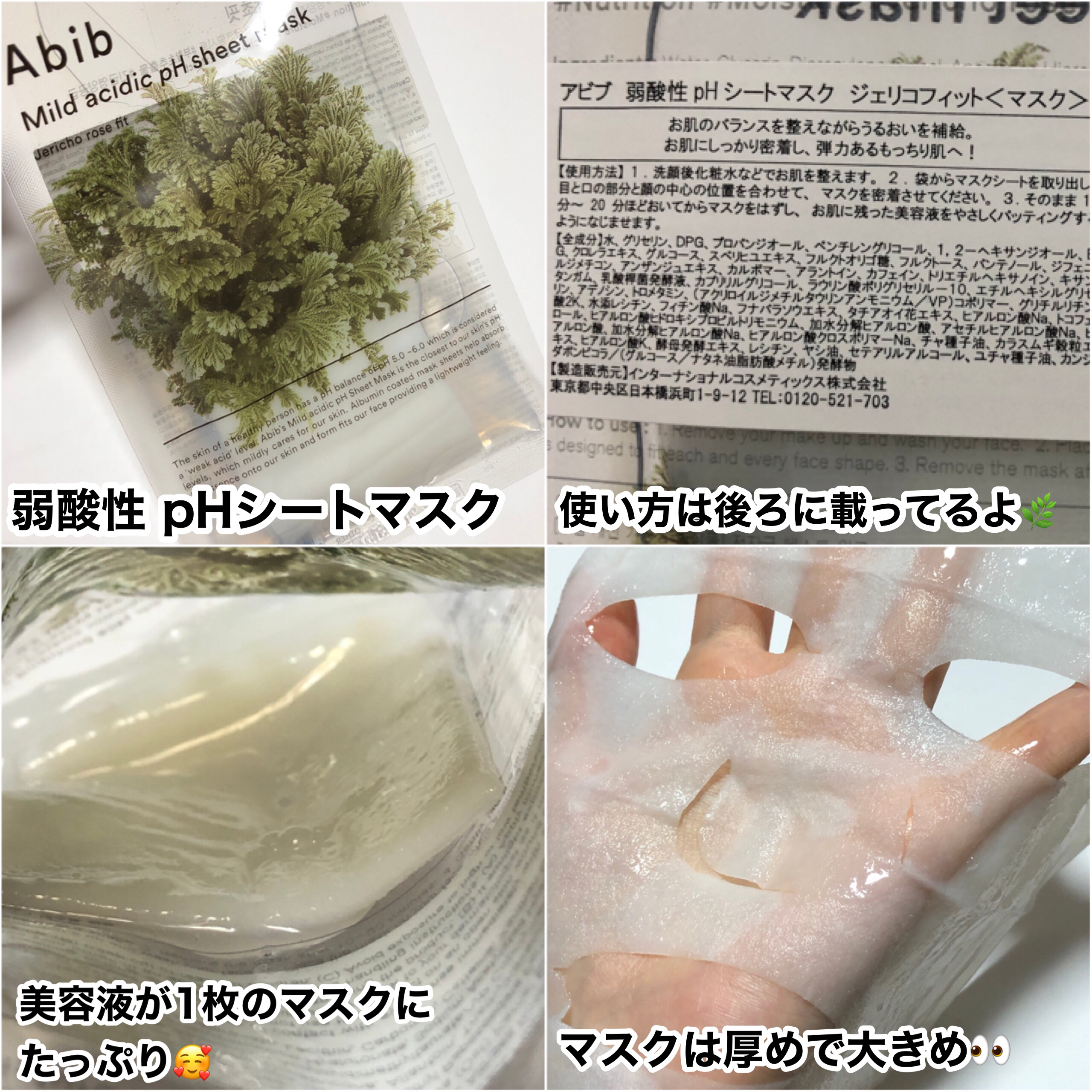 Abib弱酸性PHシートマスク復活草フィット初めて使ったパック保湿系のパックで使い心地が良かった肌荒れしている肌に使っても刺激がなく使えた1枚は高いけど特に乾燥が気になるときに特別ケアとして使っています。このパックは、シリーズがたくさんある...