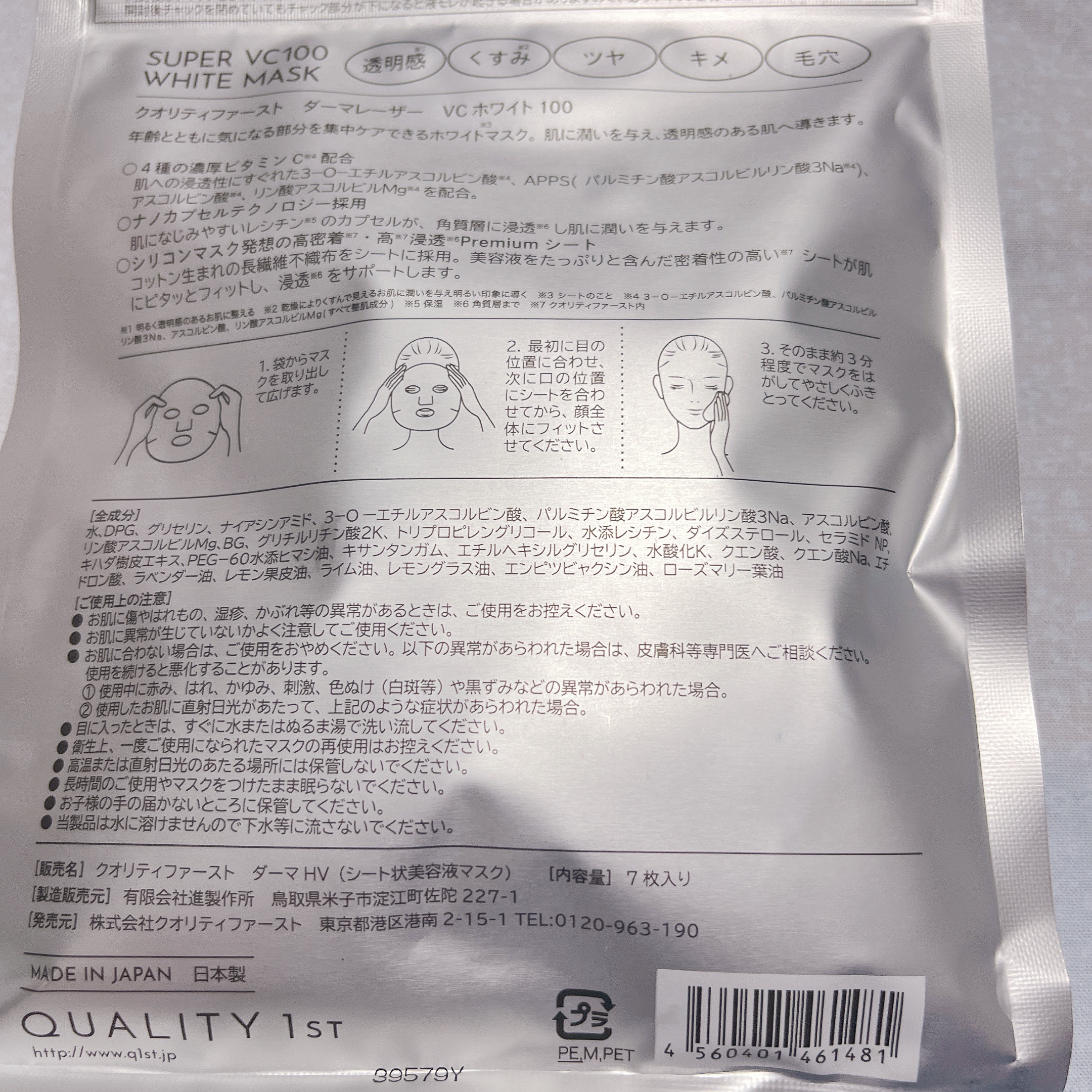 商品詳細情報クオリティファースト ダーマレーザー スーパー VC100 ホワイトマスク
