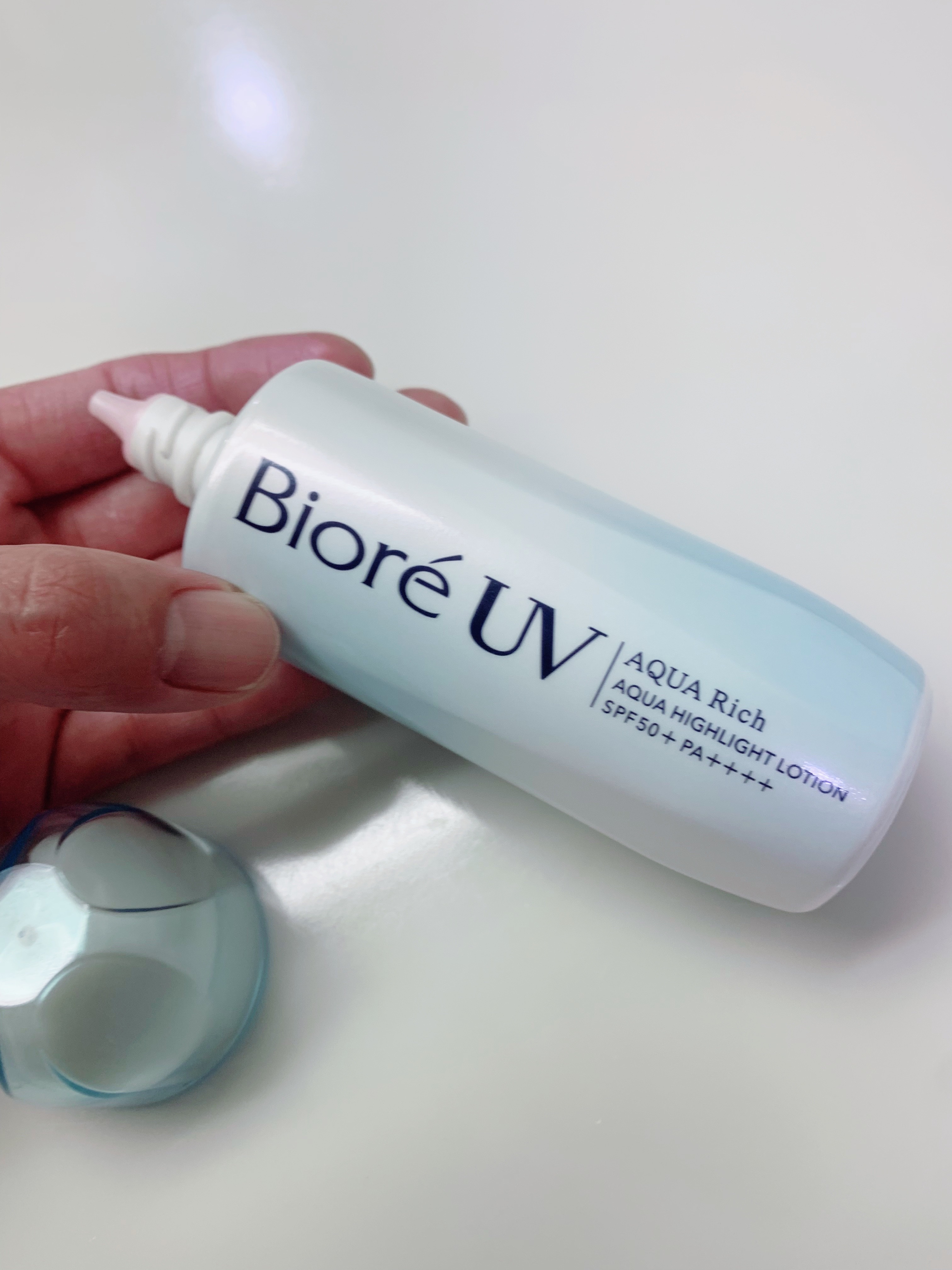 .ビオレUVアクアリッチアクアハイライトローション🌸#水層ハイライトuv身体用に購入🙌シャバシャバ系の日焼け止め。ジェルタイプに慣れてた私としてはやや使いづらい笑でも微粒のパールがすごくて、ほんとにキラキラつや感がアップ。頰、鼻筋やひたいに使...