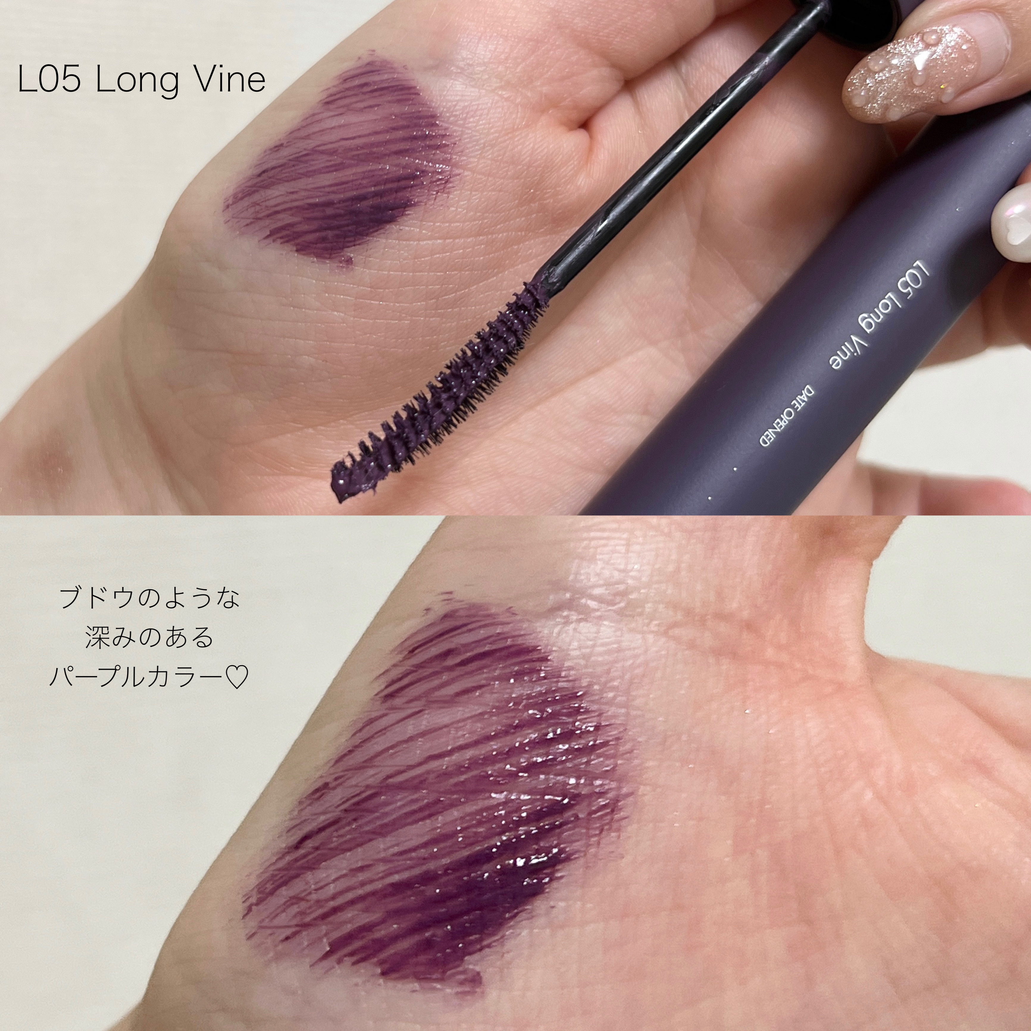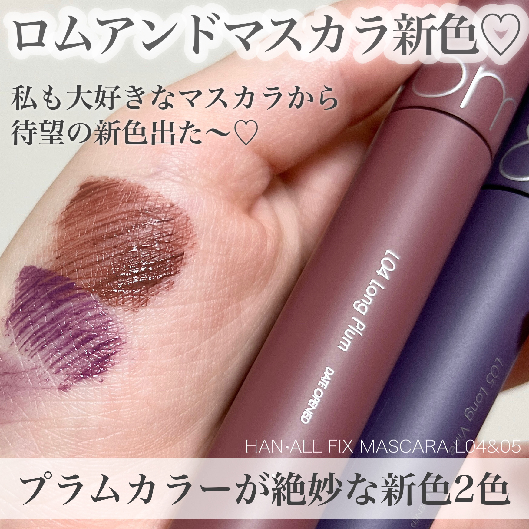 ************ロムアンドHANALLFIXMASCARAL04LongPlumL05LongVineXのキャンペーンでいただきました🌟ロムアンドのマスカラは昔から好きなんですけど、カラーマスカラは初めて使った✨L04は赤みのあるブラ...