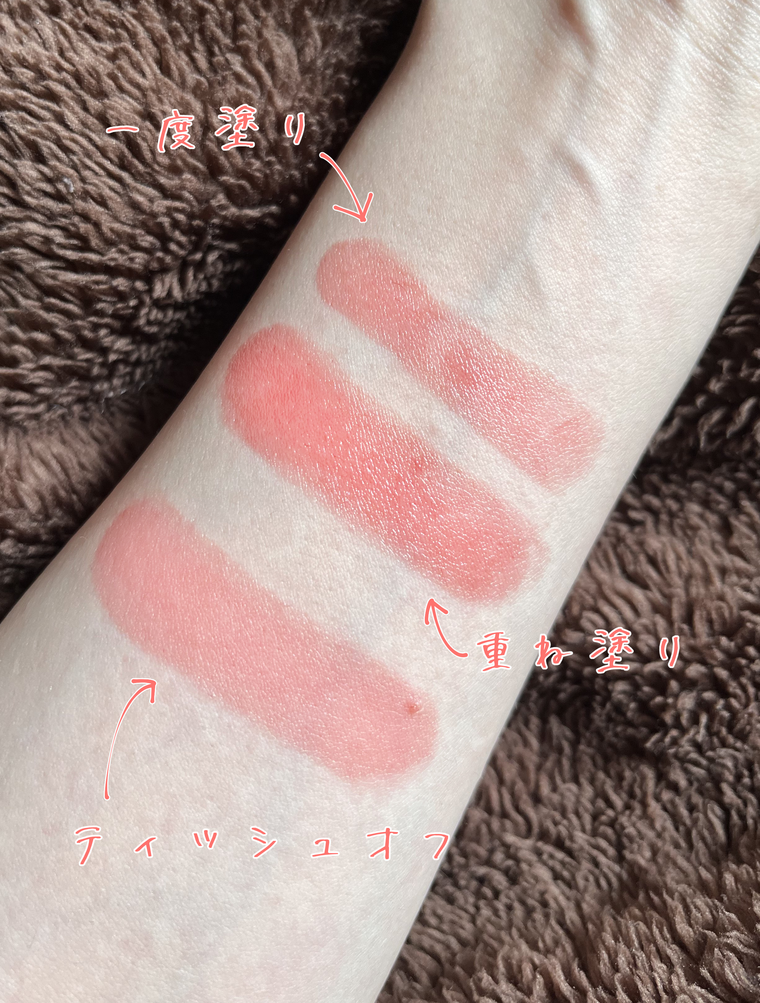 むっちりとろんとしたテクスチャに粘膜色のピンクベージュが可愛すぎる……! 保湿感がありそうでちゅるん感よりもぷるつやって感じがしますね!🤔 チップも小さめかつテクスチャも相まって滑り過ぎず、縦ジワも埋めてくれるのでティントタイプ初心者の私でもはみ出さずに楽々で塗れるのも嬉しいです✨ 他タイプも使い勝手の良さそうな色かつ持ち運びやすいコンパクトなサイズでこれから物が嵩張り安くなる季節の強い味方ですね💕︎