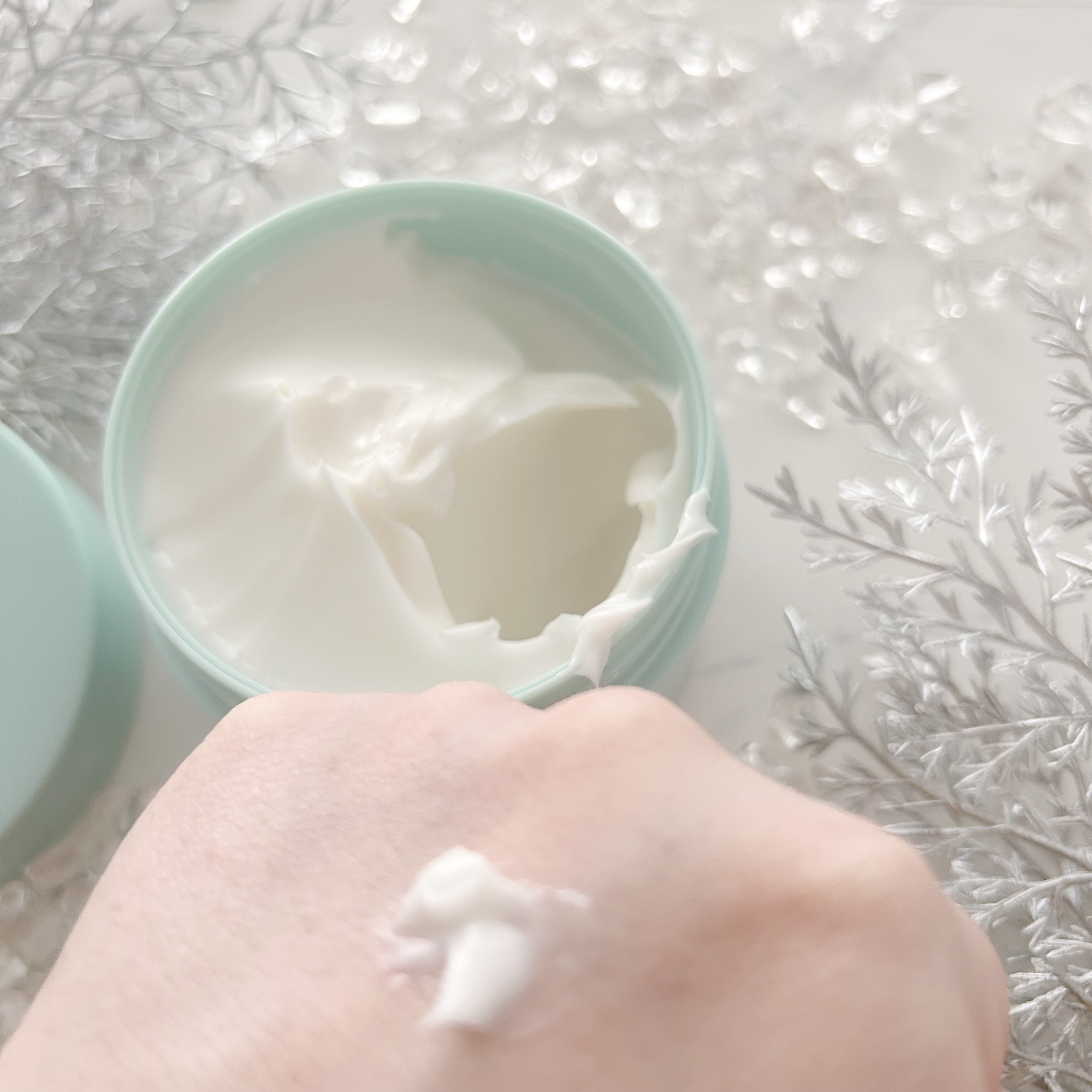 発酵美活菌やボトック様成分を配合(※2)した機能性クリームは悩みの多い大人世代の肌荒れと年齢サインに着目したアイテムです。 ジャータイプの容器はパールの輝きのように上品で高級感があります。 蓋を開けると内蓋にスパチュラも付属しているので、最後まで衛生的に使用することができます。 指でやさしく広げると、とろけるように広がります。 少量でも伸びがよく、肌馴染みが良いです。