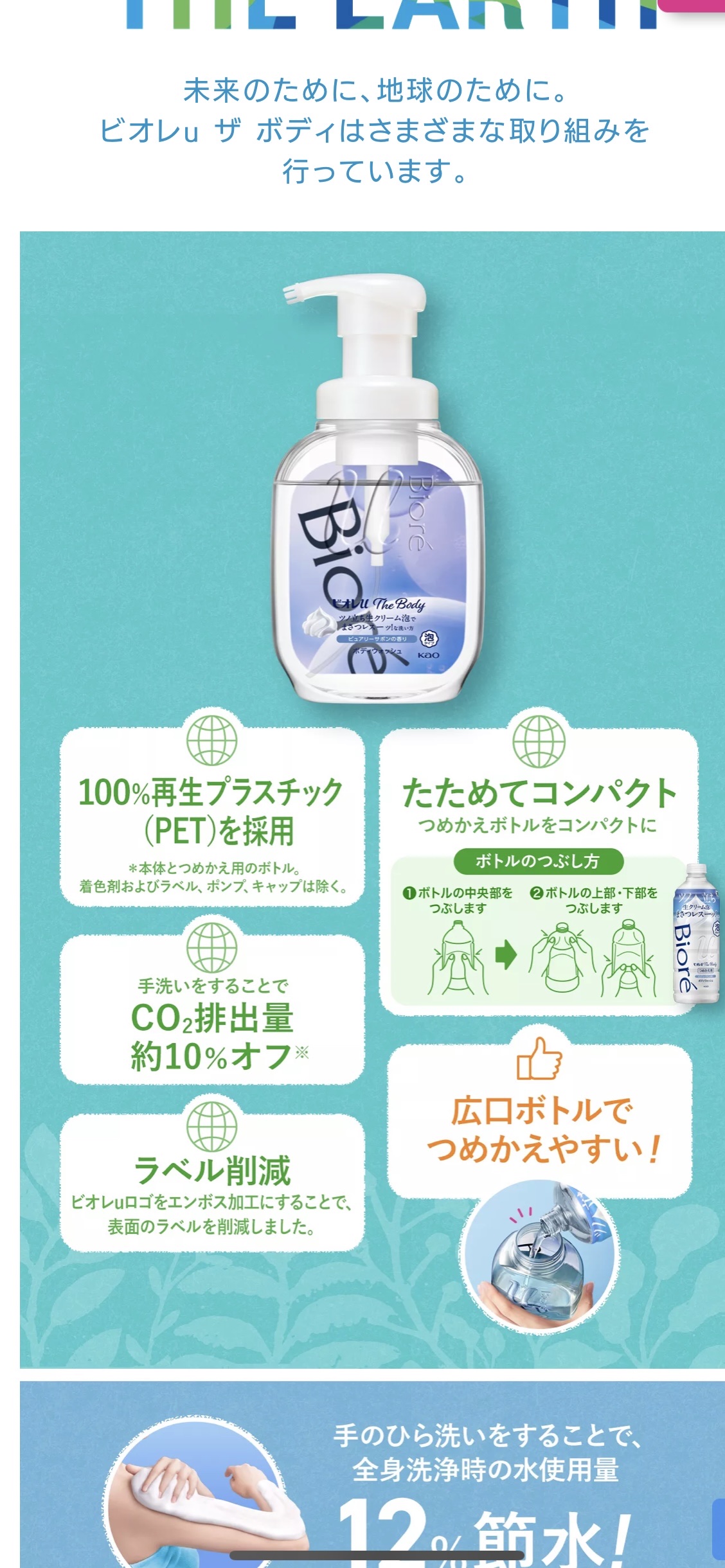 - 現代人のカサつきがちな肌に。 ツノ立ち生クリーム泡で全身“まさつレス”な洗い方へ。 超微細な泡で肌をこすらず汚れをオフ。 みずみずしい健やかな素肌をキープ。 ・独自開発のポンプフォーマーが、多量の空気を取り込んで、1.5倍量*のボリュームがある泡を作り出します *「ビオレu ザ ボディ 泡タイプ ボディウォッシュ」従来品(1プッシュあたり)との比較 【発売日】 2023年3月11日より全国発売 ※一部チェーンにて、2023年2月18日より先行発売開始
