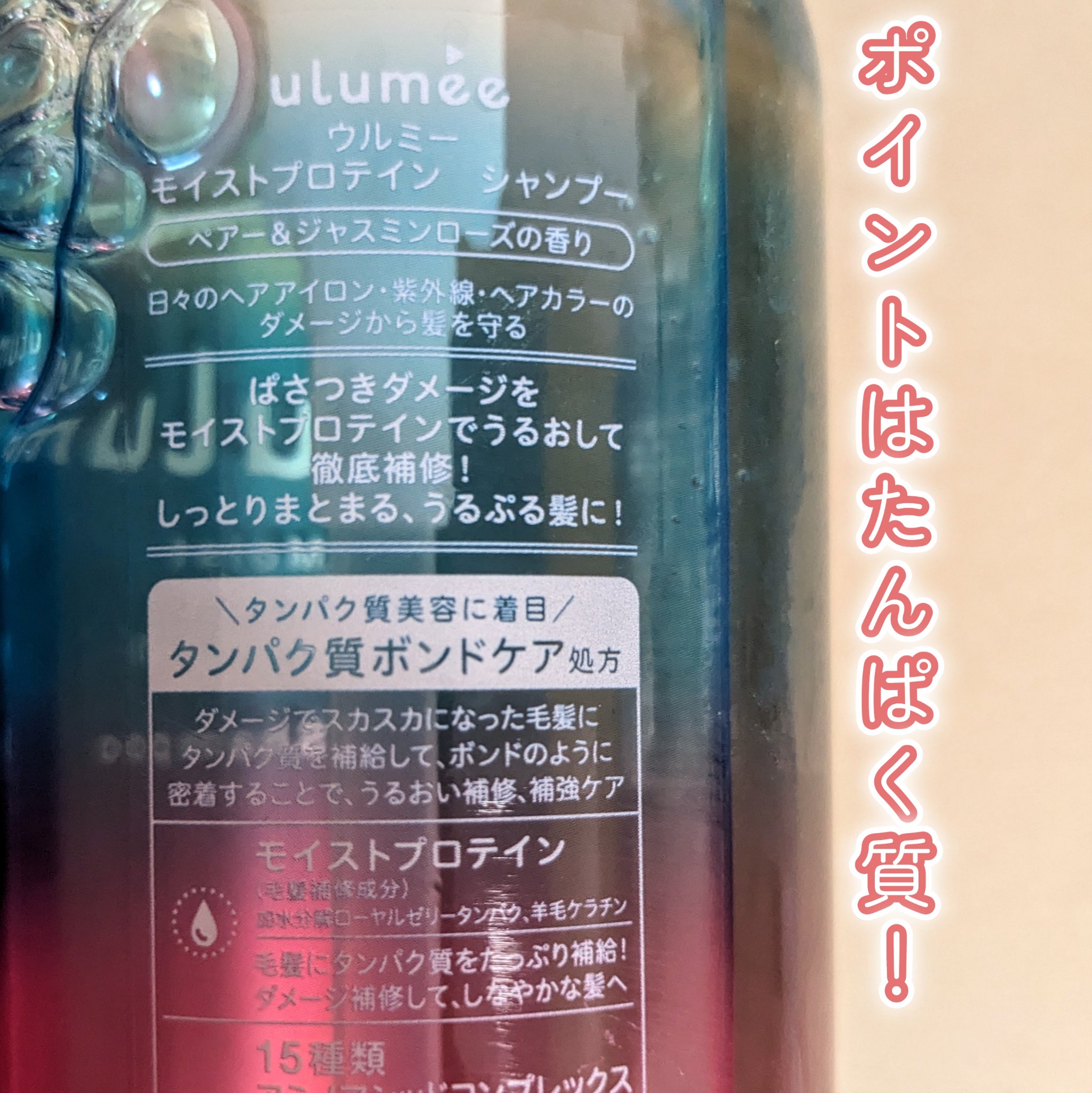 - ペアー&ジャスミンローズの香り。 ぱさつきダメージをモイストプロテイン*でうるおして徹底補修!しっとりまとまる、うるぷる質感の髪に!タンパク質美容に着目した「タンパク質ボンドケア処方」で乾燥でパサパサになった毛髪にタンパク質*を補給して、うるおい補修、保護ケア。水分と油分のバランスを保持しながらもっちり泡で洗い上げるシャンプーと、うるおいを閉じ込めダメージ補修&毛髪保護するトリートメントです。 *加水分解ローヤルゼリータンパク、羊毛ケラチン(毛髪補修成分)