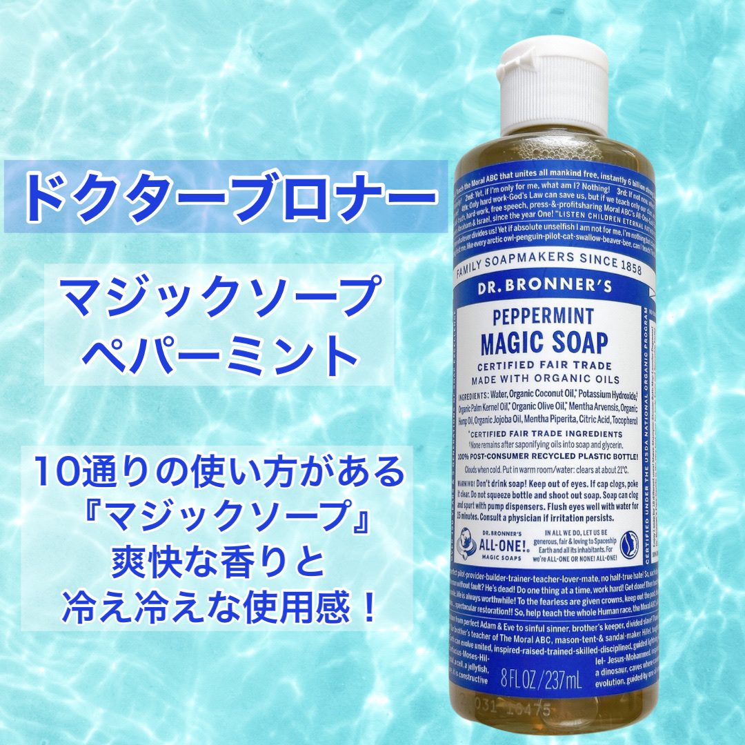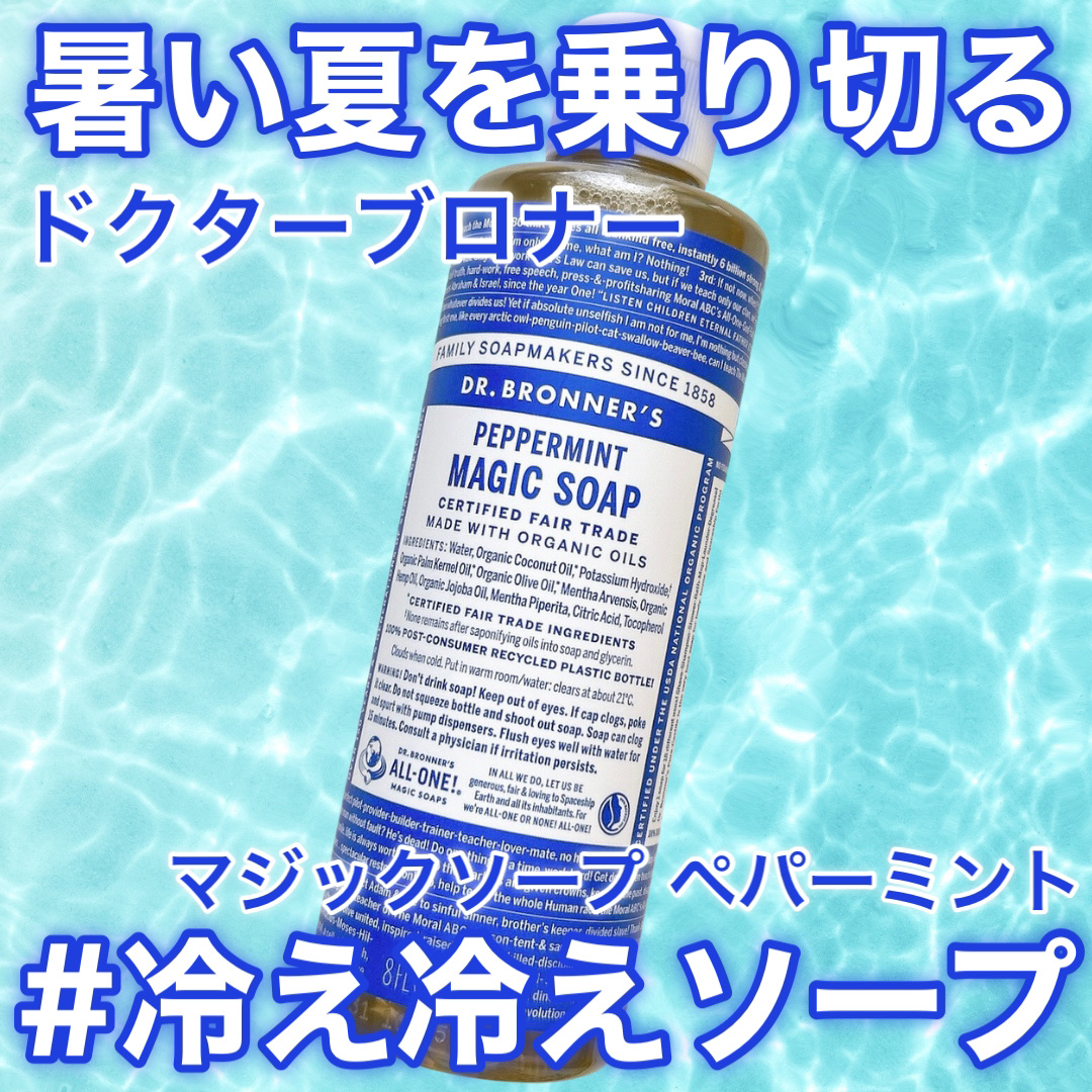 #スキンケアの衣替え1本で全身使えるマルチソープ✨これから蒸し暑くなる季節、ボディソープも爽快感感じるものがいいよね。ドクターブロナーマジックソープ237mlペパーミント夏にぴったりのフレーバー「ペパーミント」🤍日本では、「薄荷(ハッカ)」と...