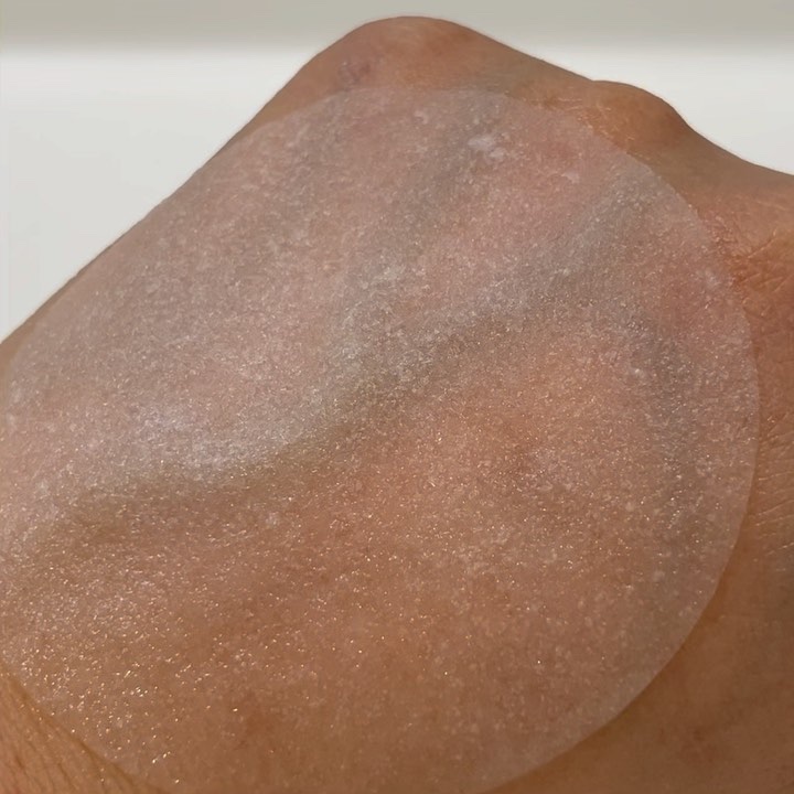 美容液は朝から使える肌馴染みの良さと、垂れない程度のとろみの加減が絶妙✨5分ほどの使用で肌がひんやりします(公式の推奨使用時間は10分)。 生地はふっくら柔らかく、美容液をしっかりと抱えてくれます。 ぱっと貼ってぱっと剥がす使い方にこの上なくぴったり!ストレスフリー💕